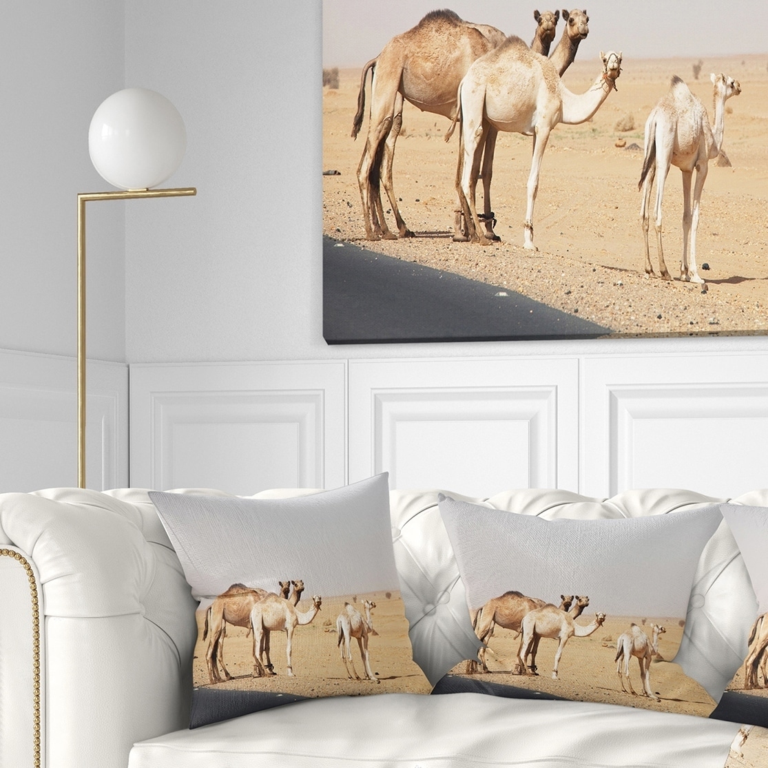 Designart 'Camels in Sunny Sahara Desert' Animal Throw Pillow