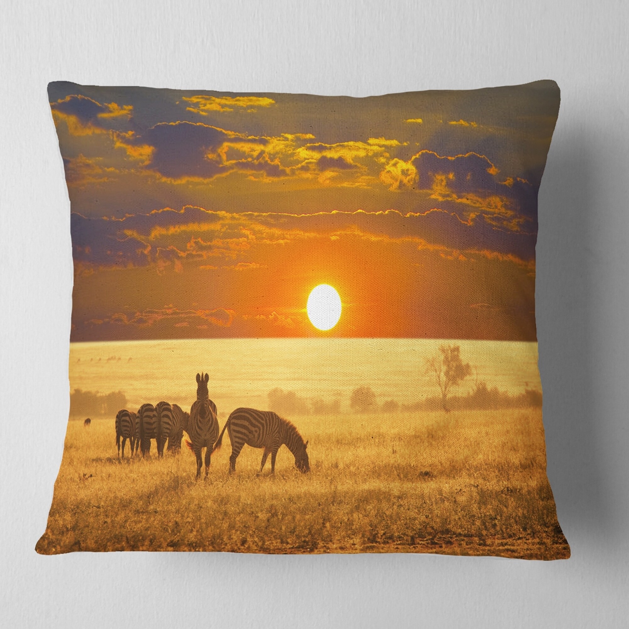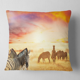 Designart 'Group of Zebras Grazing At Sunset' Animal Throw Pillow