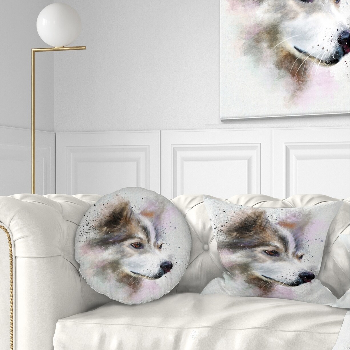 Designart 'Gray Dog Watercolor' Animal Throw Pillow