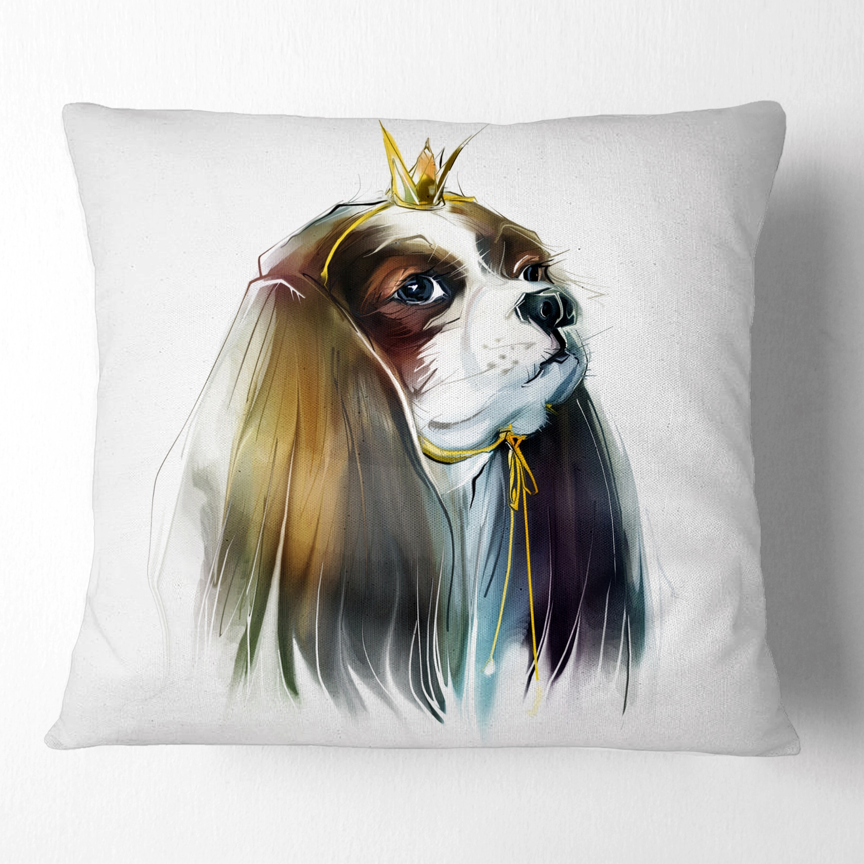 Designart 'Cute Little Dog in Crown' Animal Throw Pillow