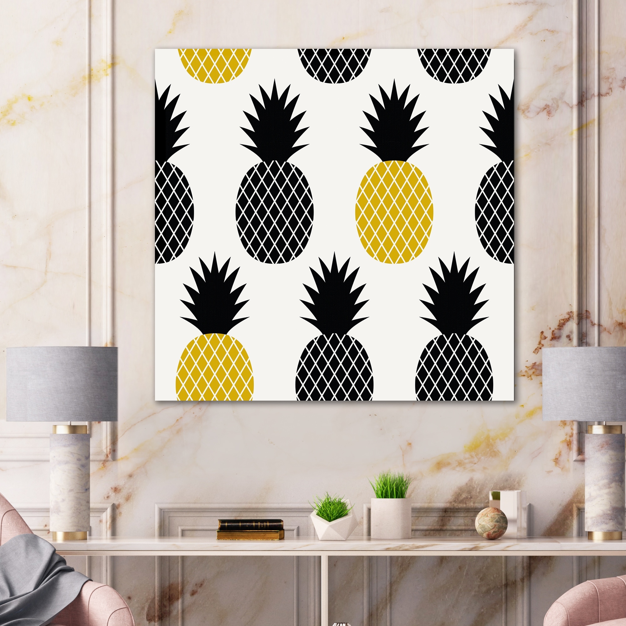 Designart "Black And Yellow Pineapple" Mid-Century Modern Canvas Wall Art Print