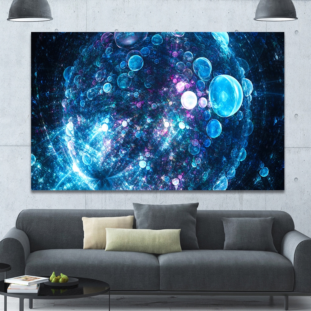 Designart "Blue Fractal Planet of Bubbles" Abstract Wall Art Canvas