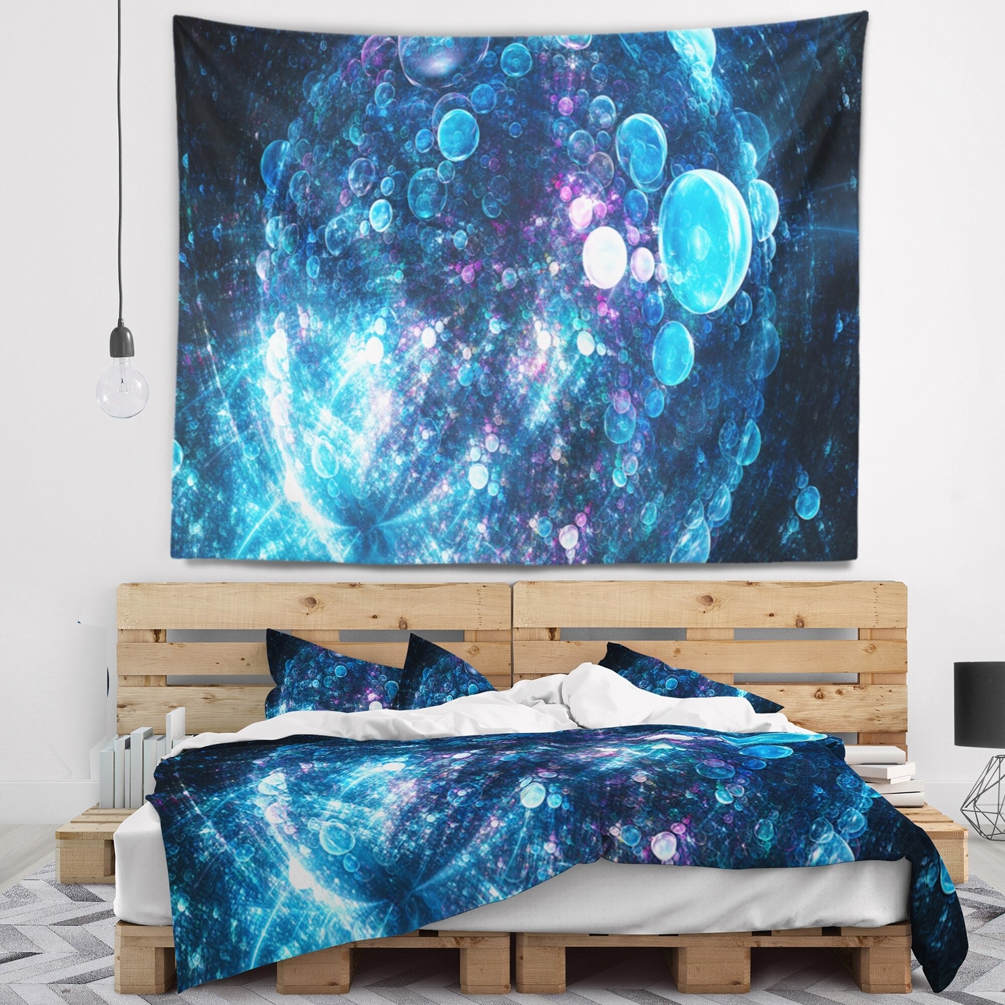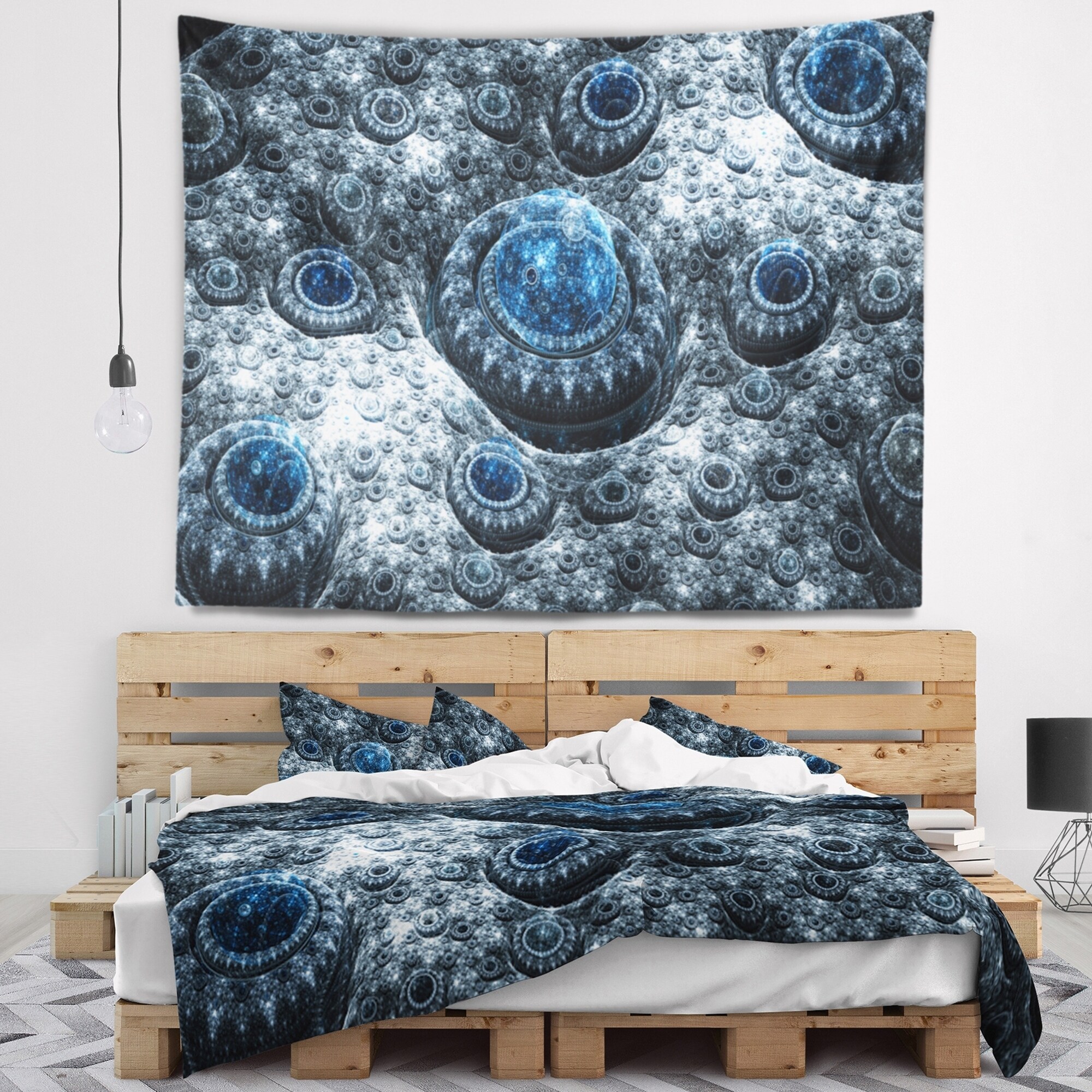 Designart 'Blue Fractal Planet of Bubbles' Abstract Wall Tapestry