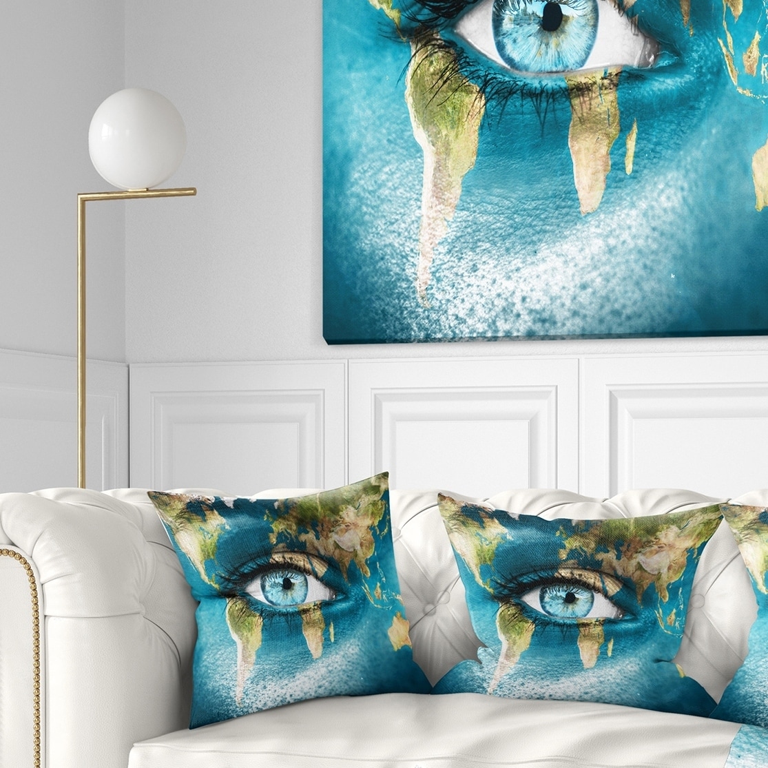 Designart 'Planet Earth and Blue Eye' Abstract Throw Pillow