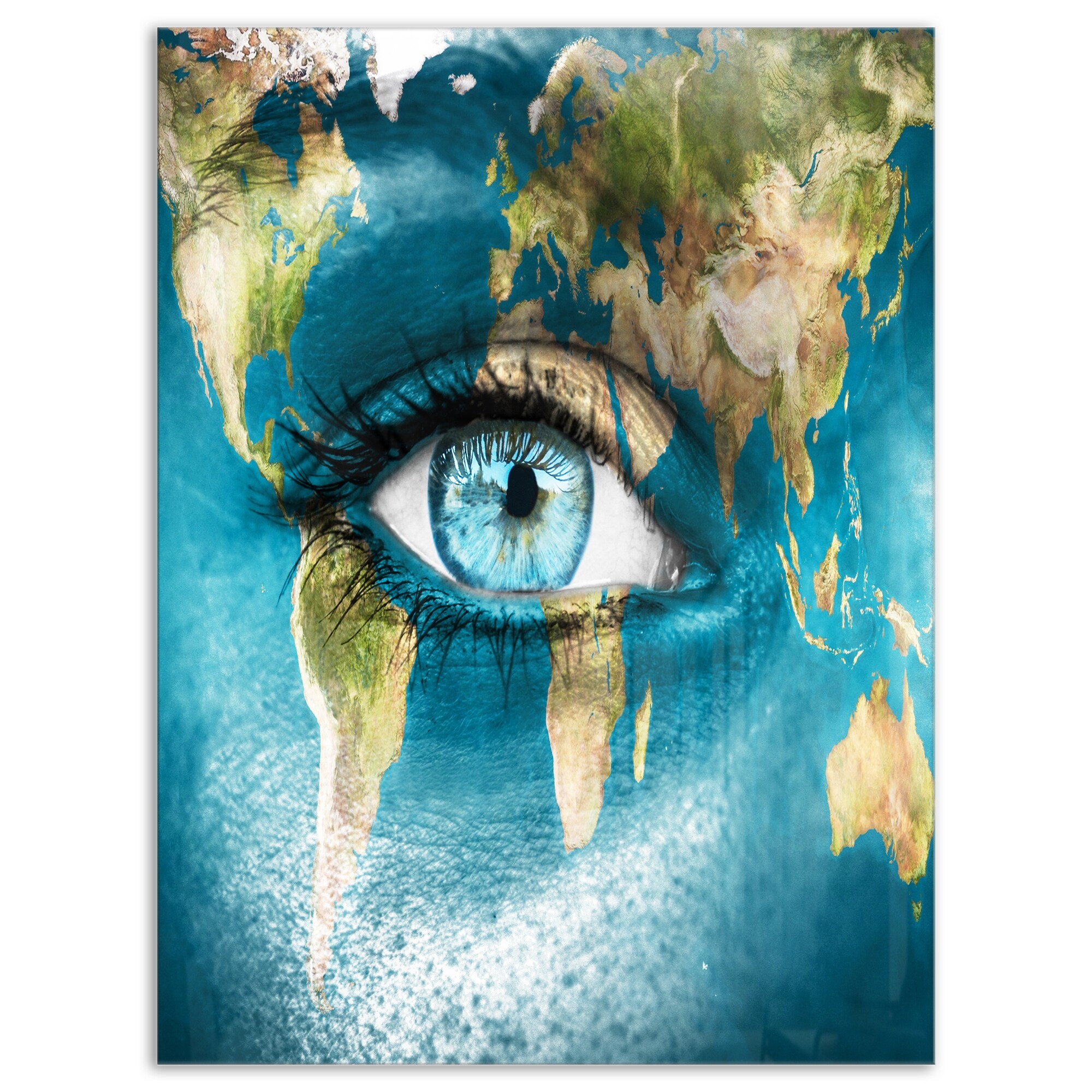 Planet Earth and Blue Eye - Abstract Digital Art Glossy Metal Wall Art