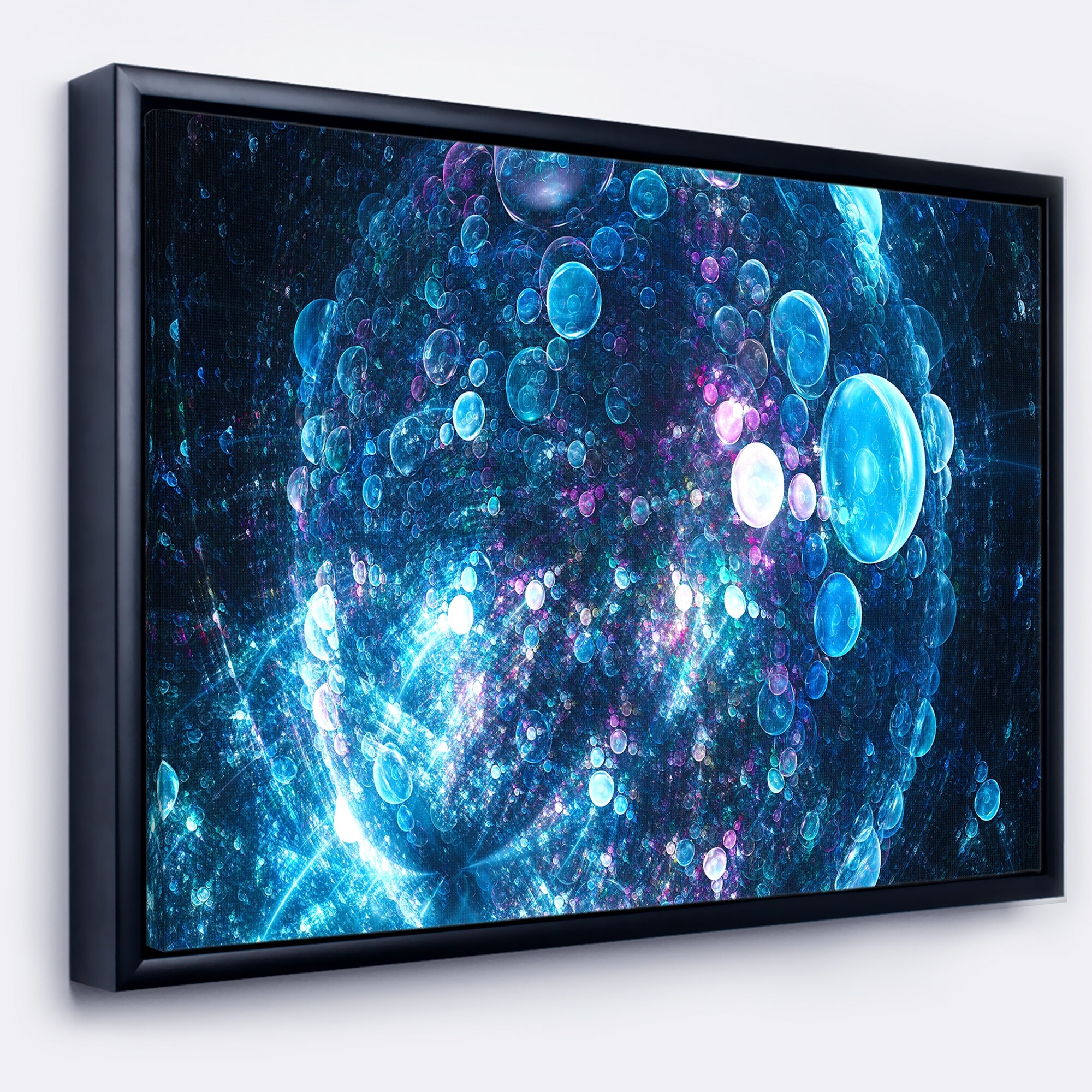 Designart "Blue Spherical Planet Bubbles" Abstract Framed Canvas Art Print
