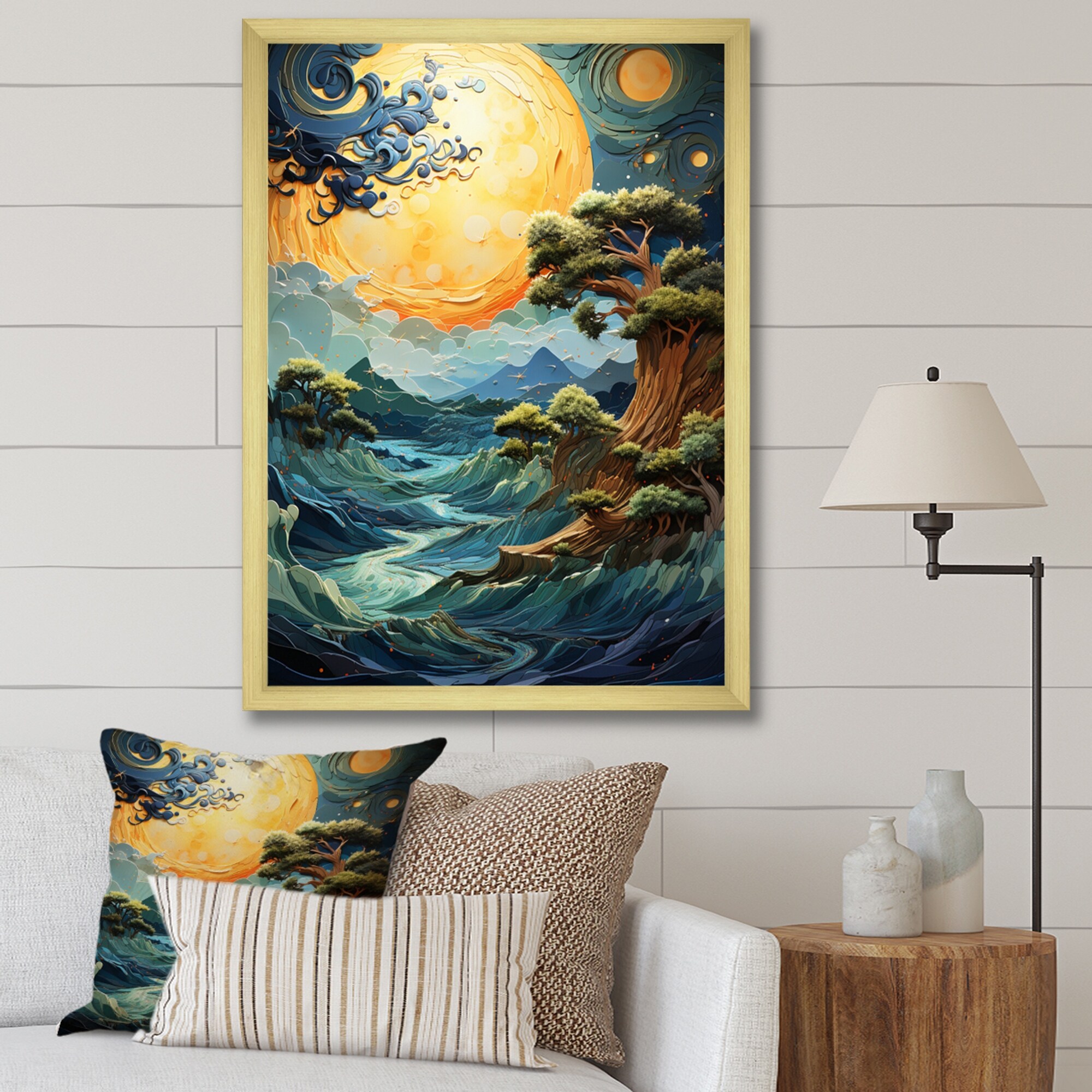 Designart "Bright Blue Solar Bubbles Planet" Abstract Framed Canvas Wall Art