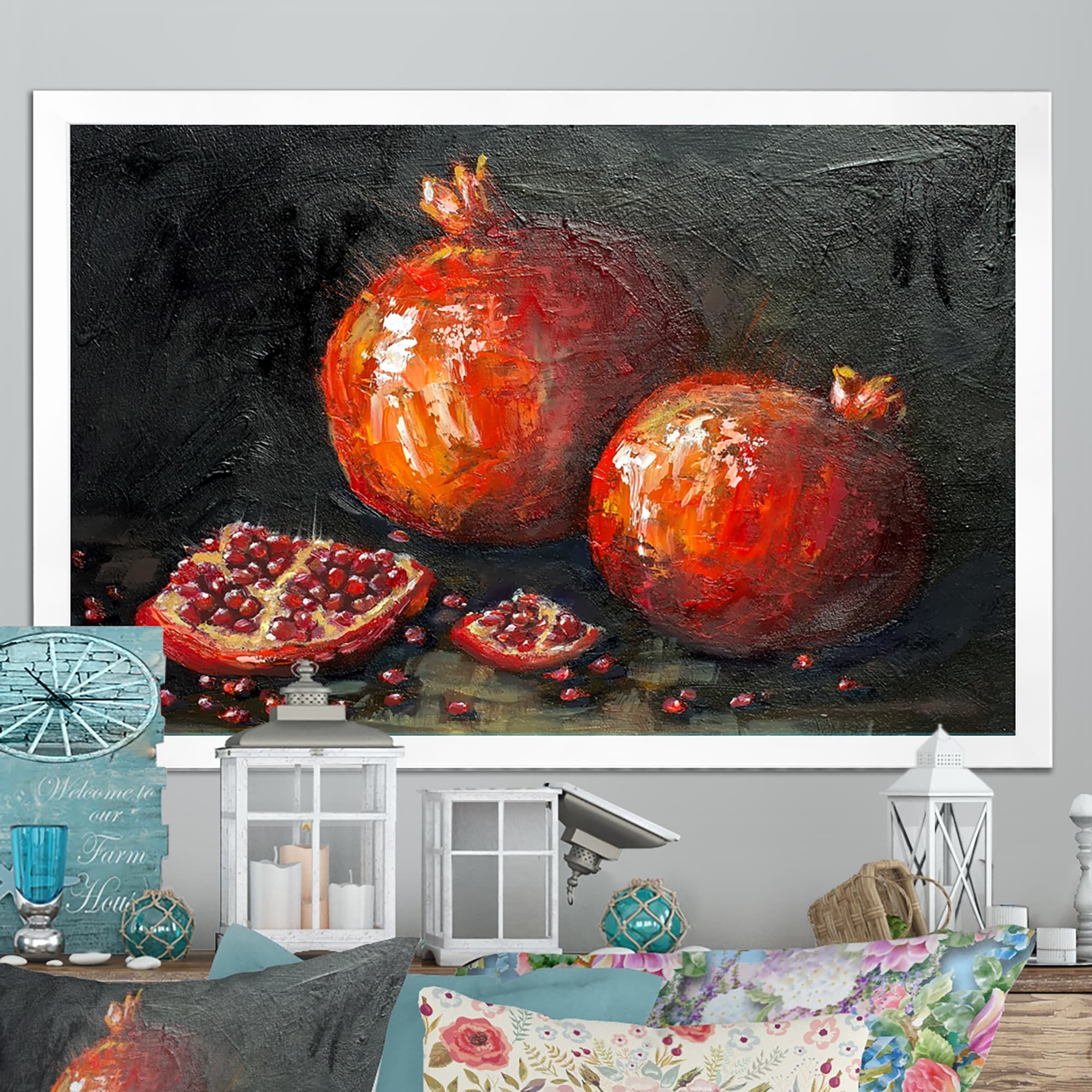 Designart "Red Pomegranates Impressionims" Farmhouse Framed Art Print