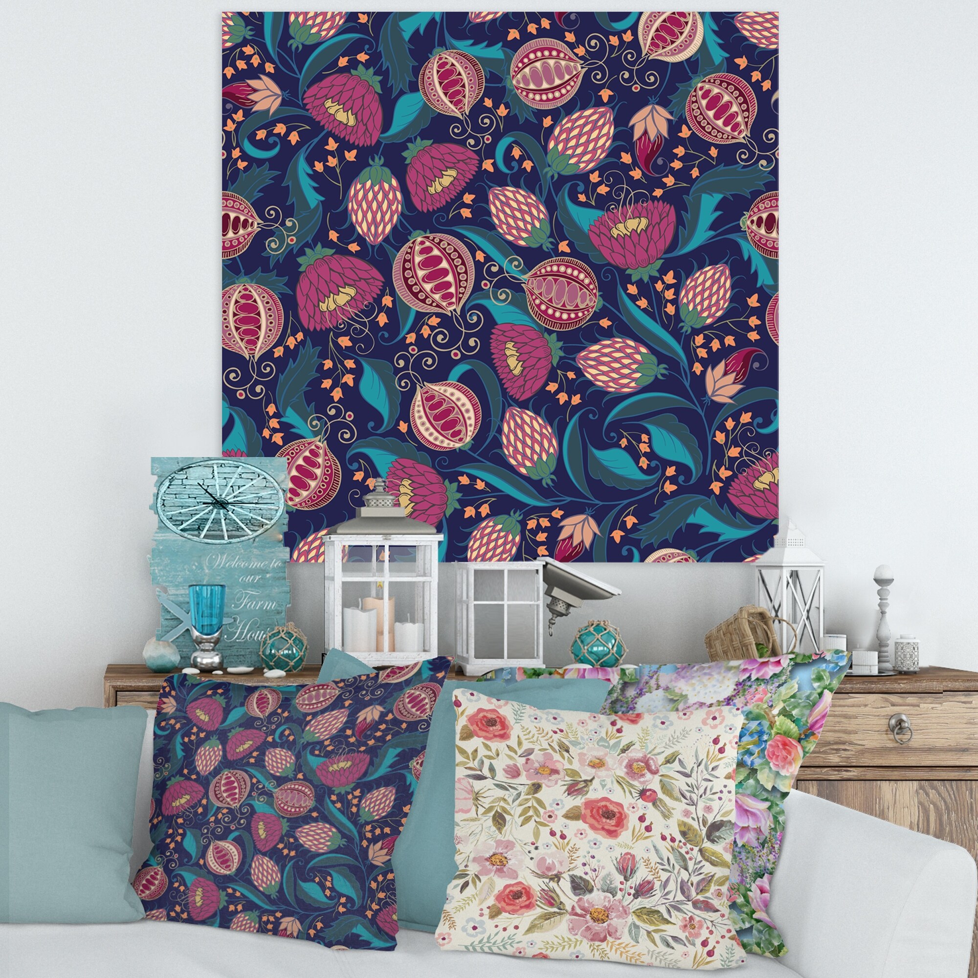 Designart "Fuchia Pomegranate on Dark Blue" Modern Canvas Wall Art Print