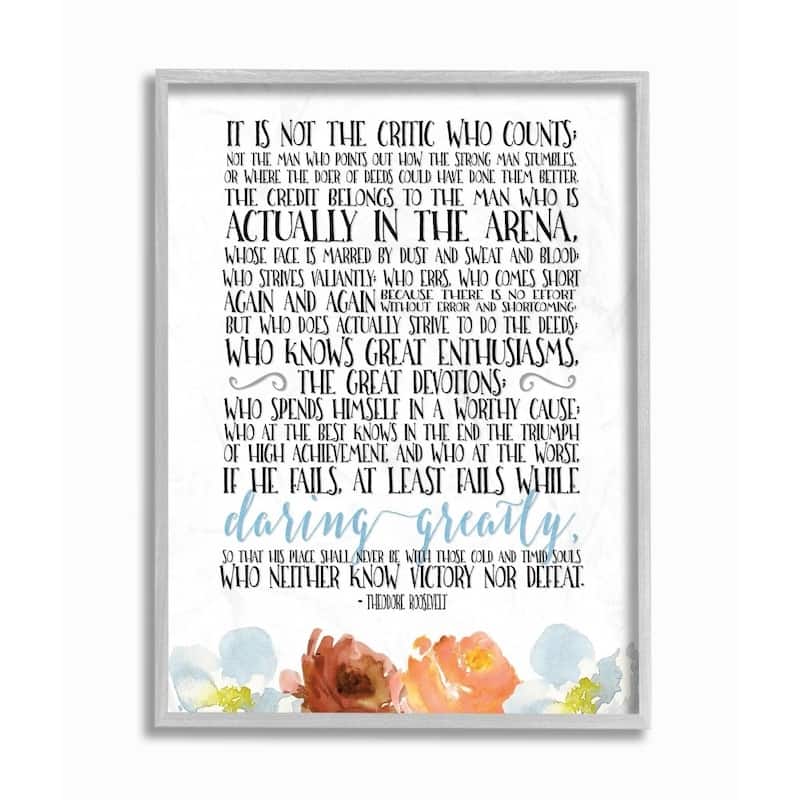 The Stupell Home Decor It Is Not the Critic Who Counts Roosevelt Floral Quote, 11 x 14, Proudly Made in USA - Multi-Color