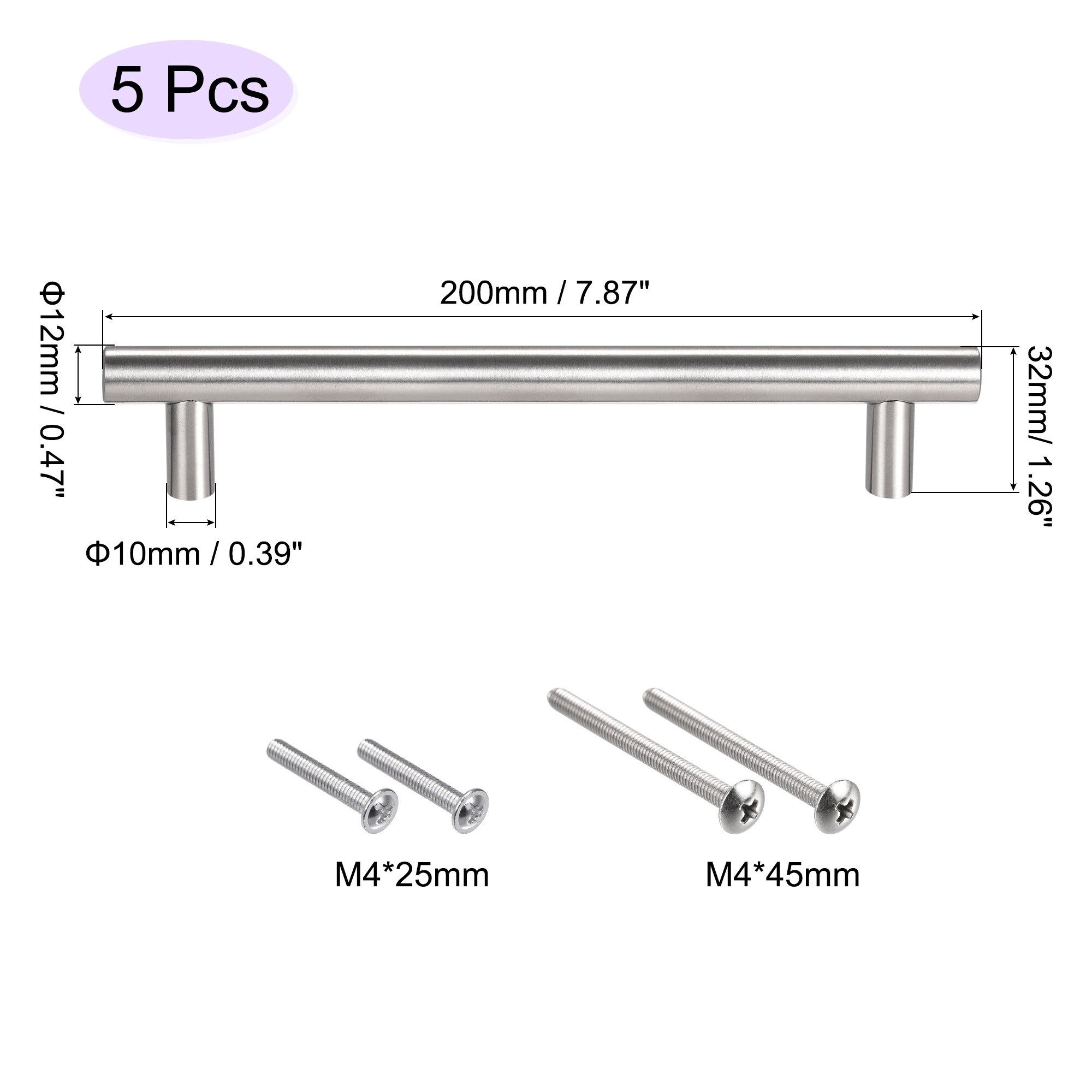 T Bar Pull Handle, 12mm Dia Stainless Steel Cabinet Pulls 5pcs