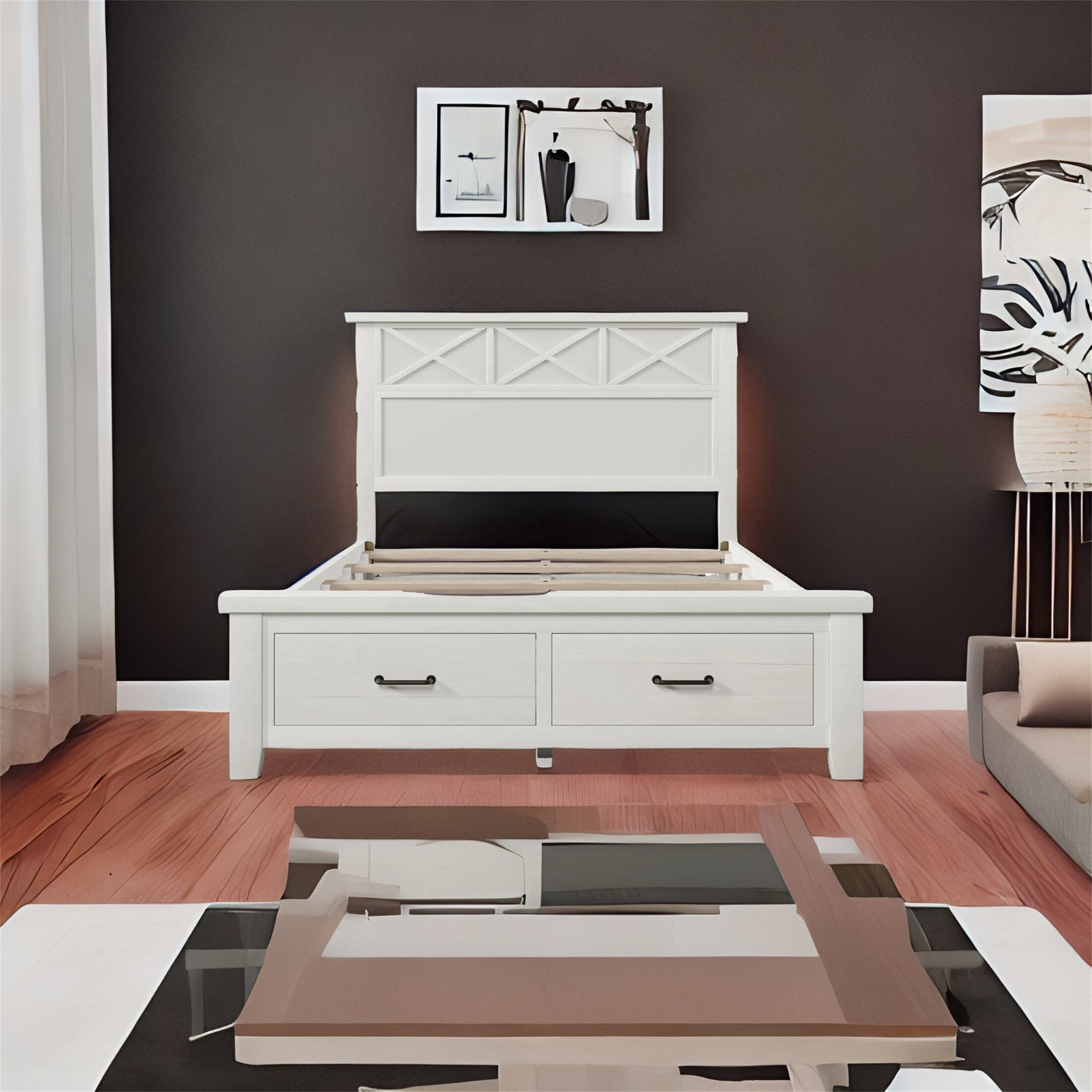 Rustic Farmhouse Style Queen Platform Storage Bed with Two Drawers