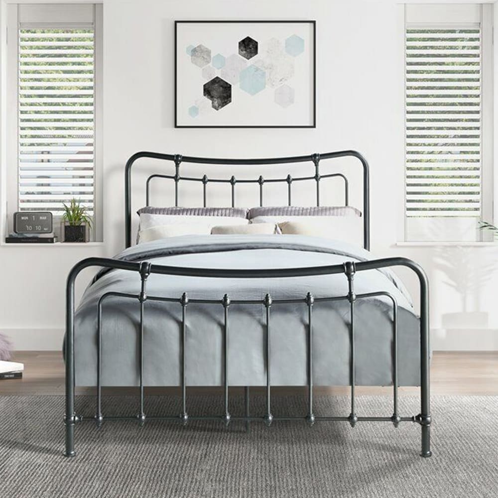 Queen Size Metal Platform Bed Gunmetal Gray