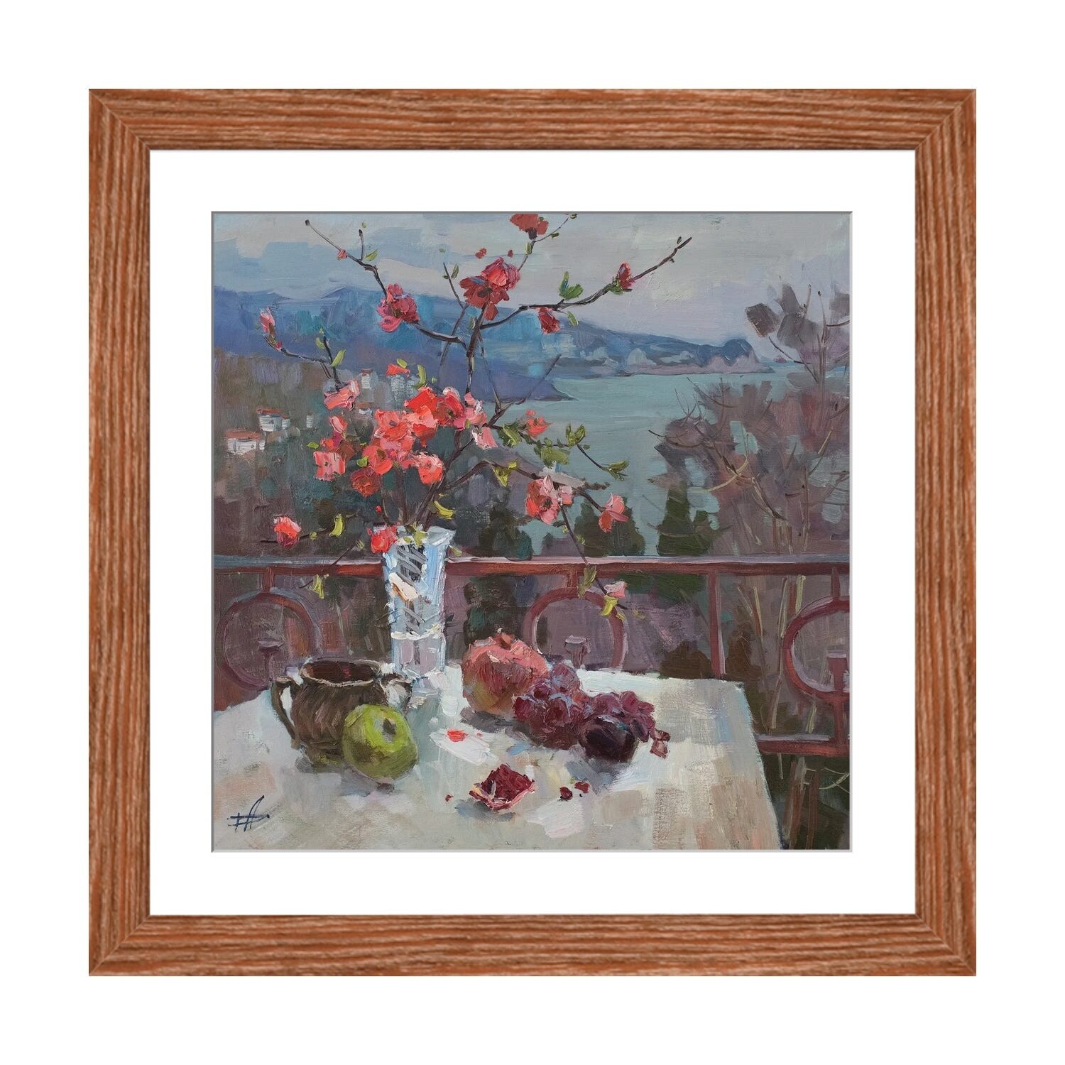 Quince Blossom Contour II -Framed Print w/glass-Cherry Red
