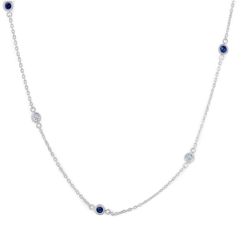 1/2 Ct tw Genuine Blue Sapphire & Diamond By the Inch 18" Necklace