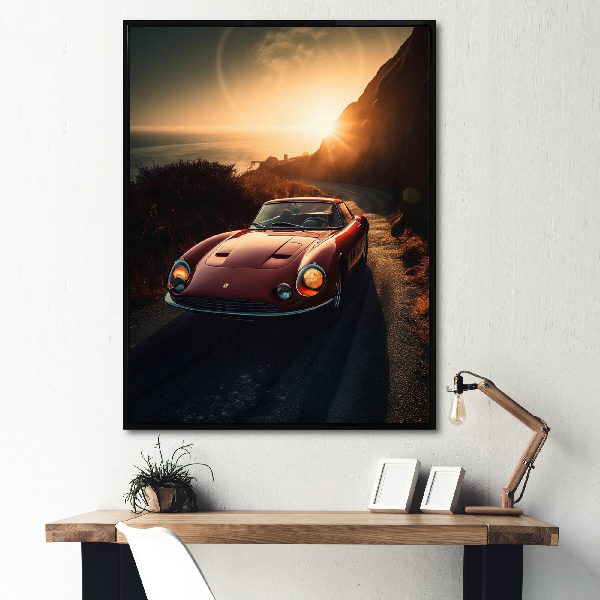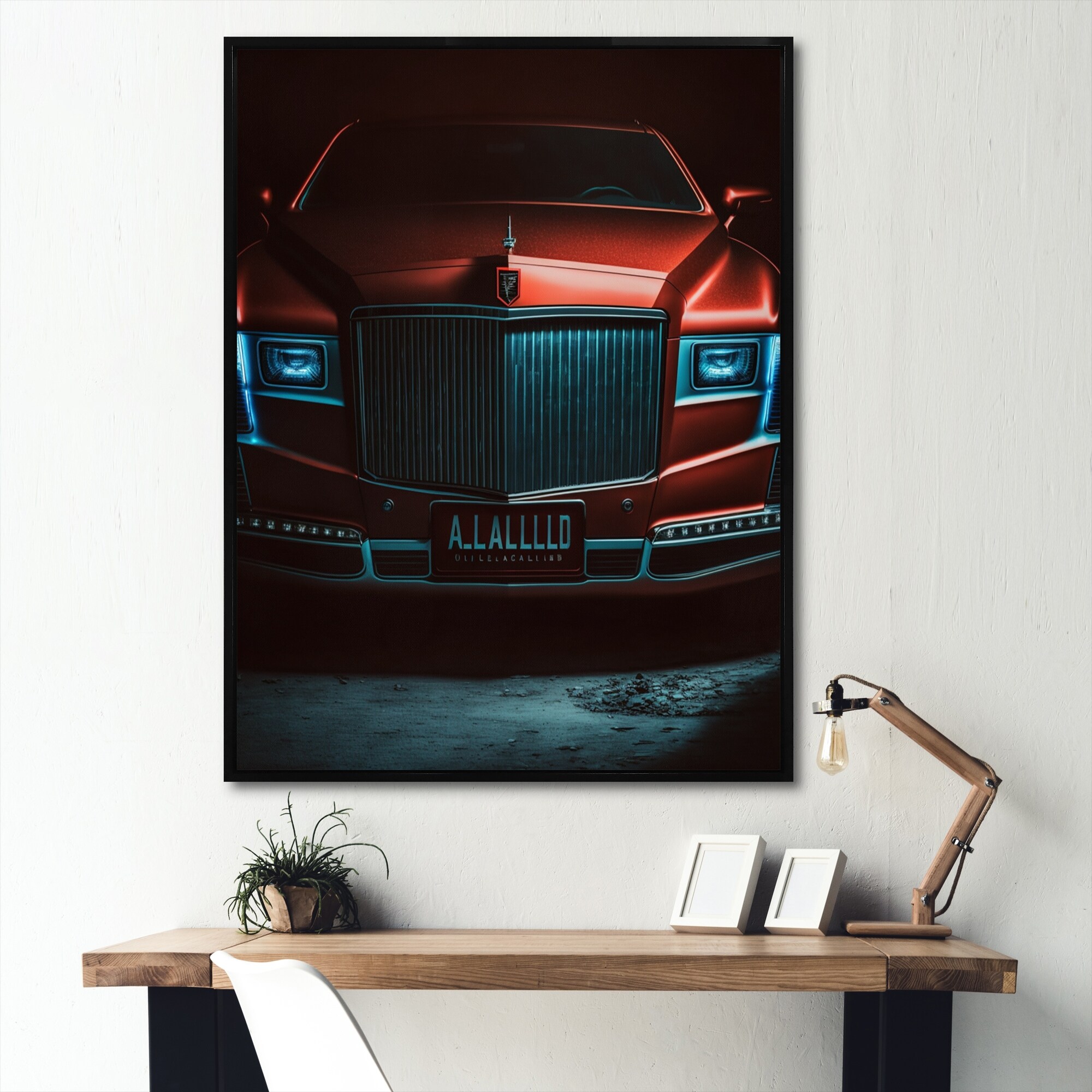 Designart "Red And Black Reflections of Retro Cars" Retro Car Framed Canvas Wall Art