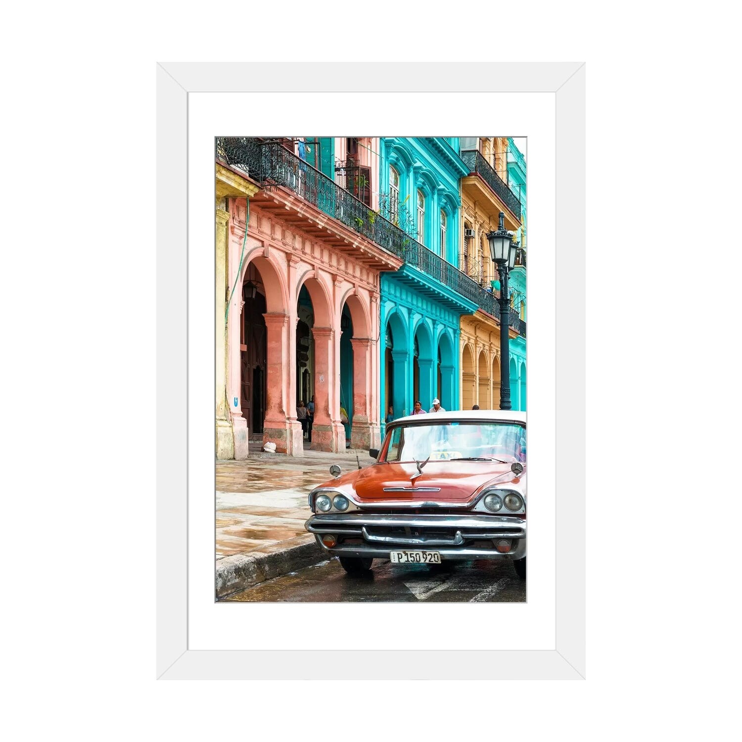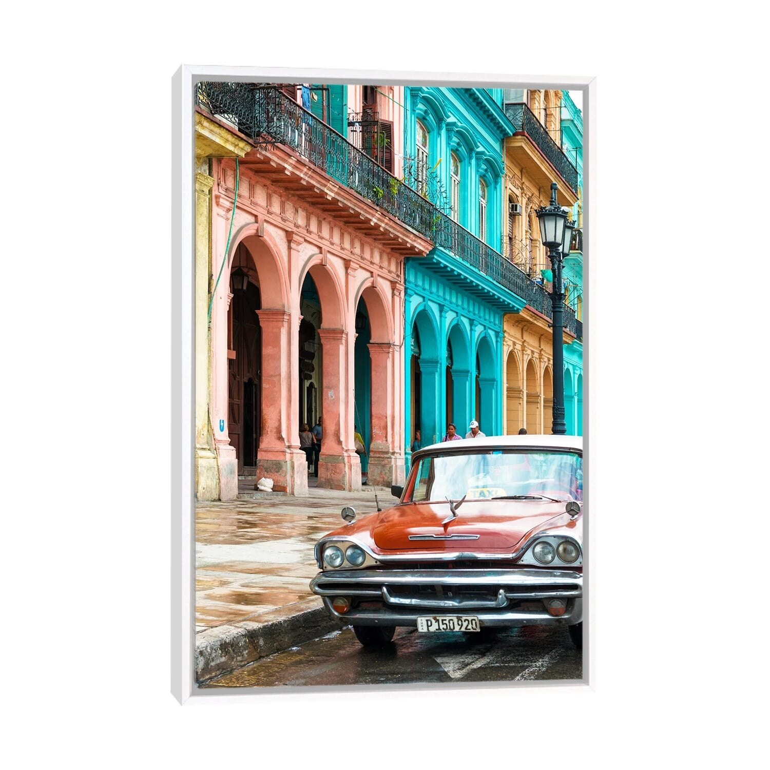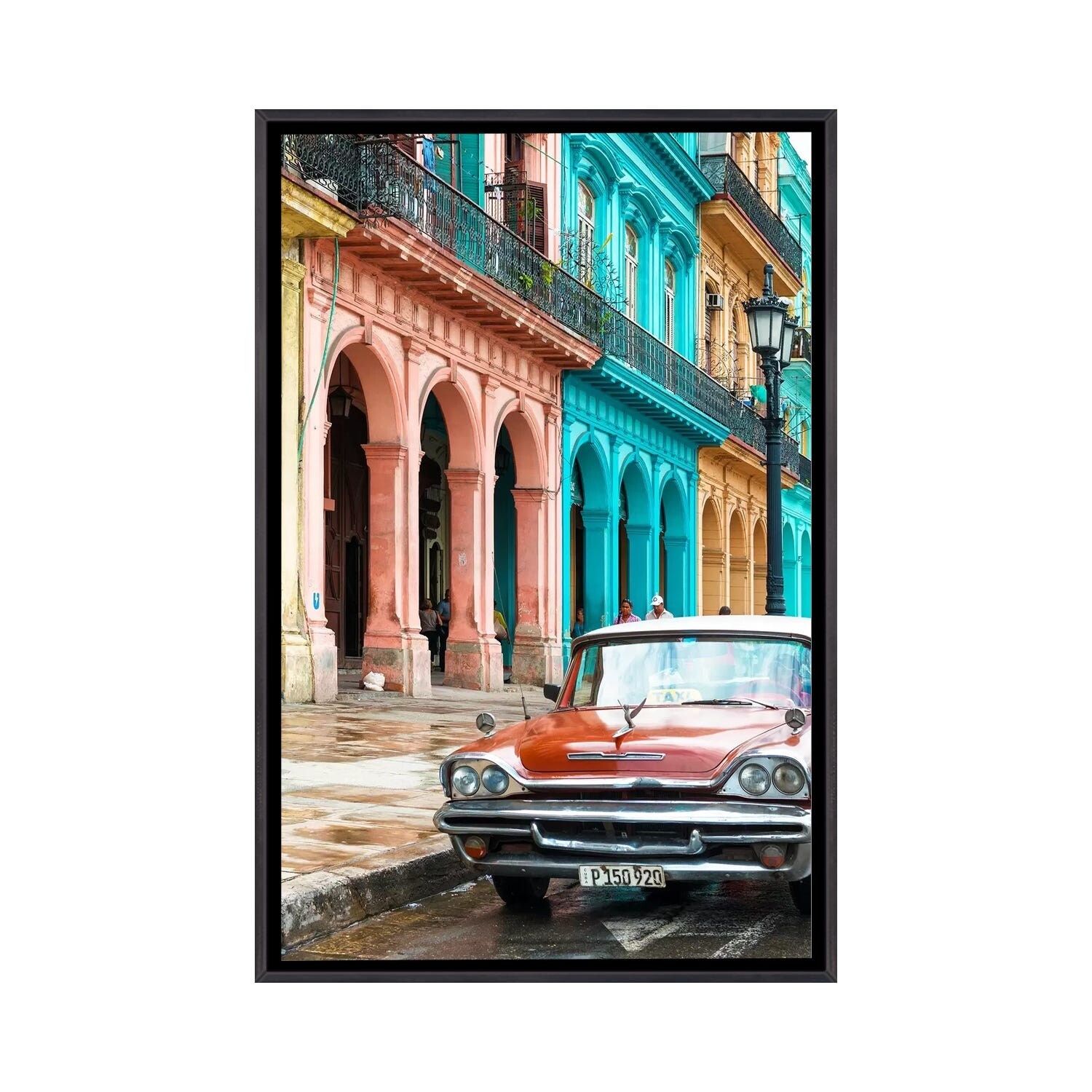 iCanvas "Colorful Buildings and Red Taxi Car" by Philippe Hugonnard Framed Canvas Print