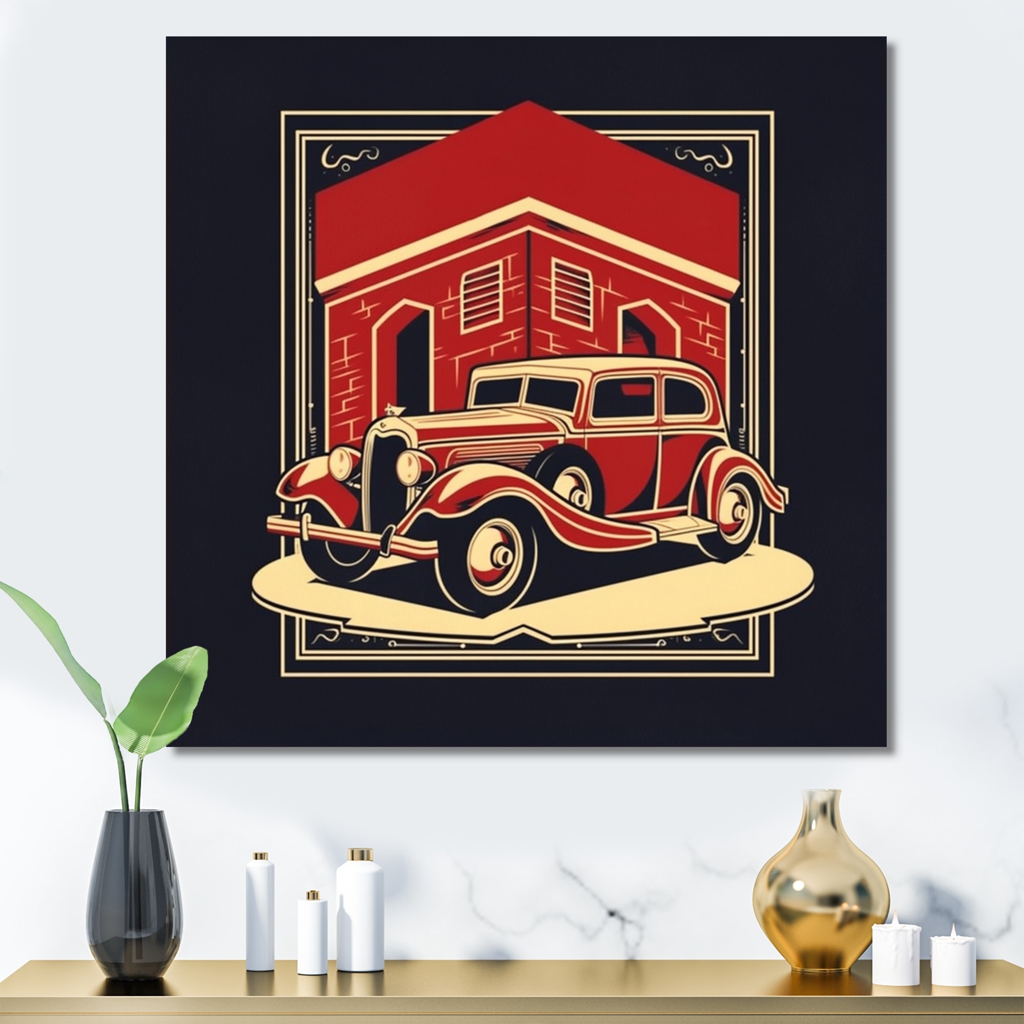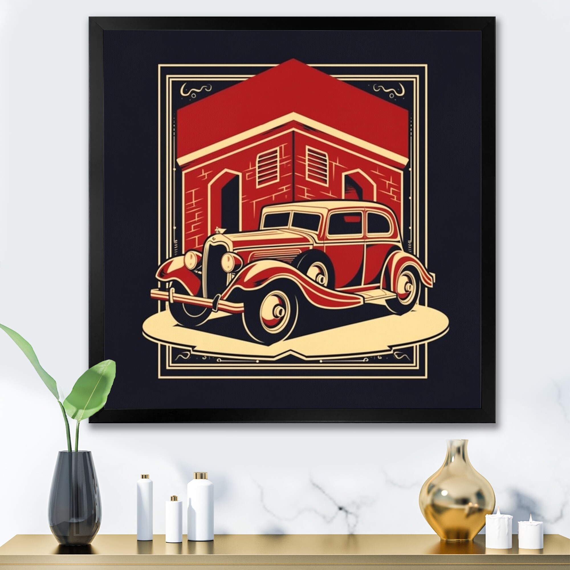 Designart "Red And Black Reflections of Retro Cars" Retro Car Wall Art for Living Room