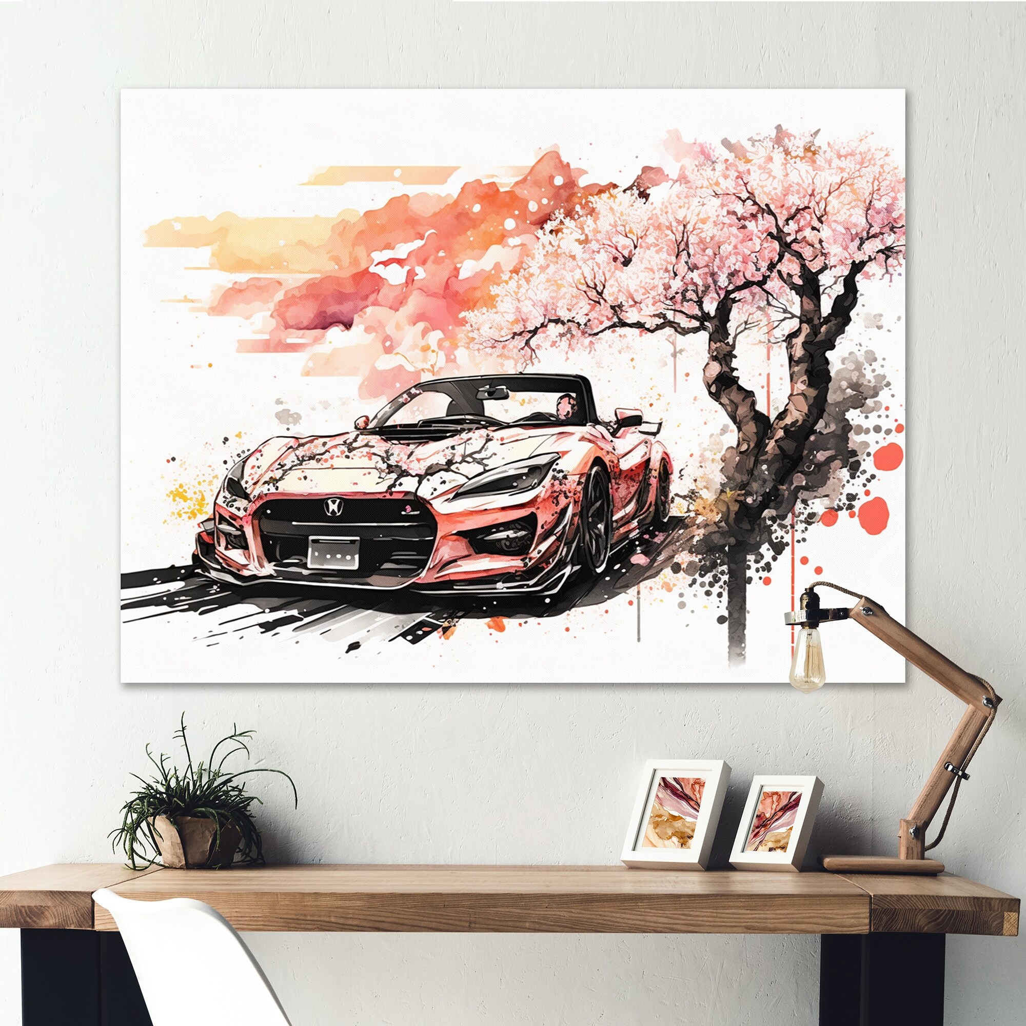 Designart "Red And Cream Essence of Retro Car Ii" Retro Car Canvas Art Print