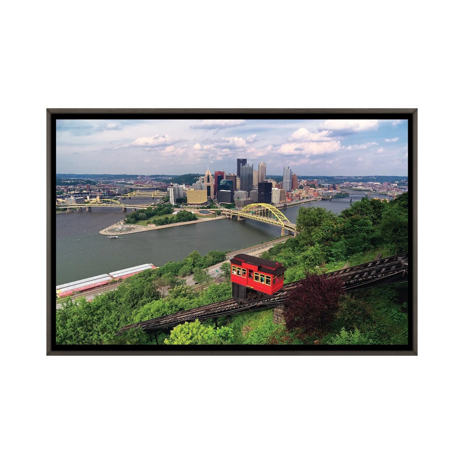 iCanvas "Red Railway Car on the Duquesne Incline, Pittsburgh, Pennsylvania" by George Oze Framed Canvas Print
