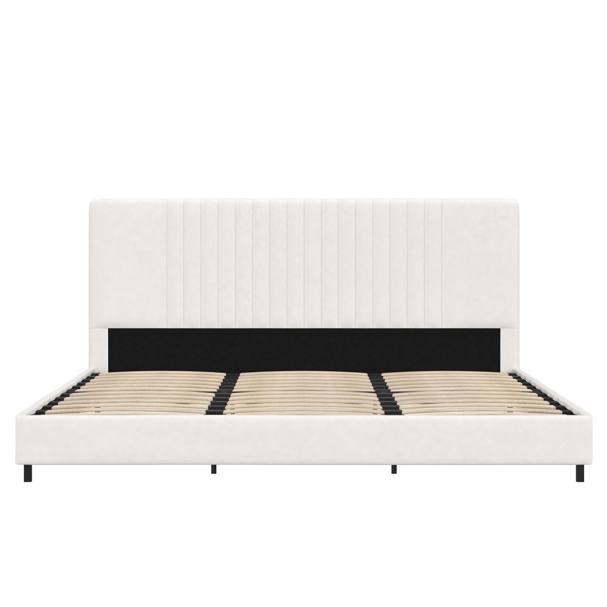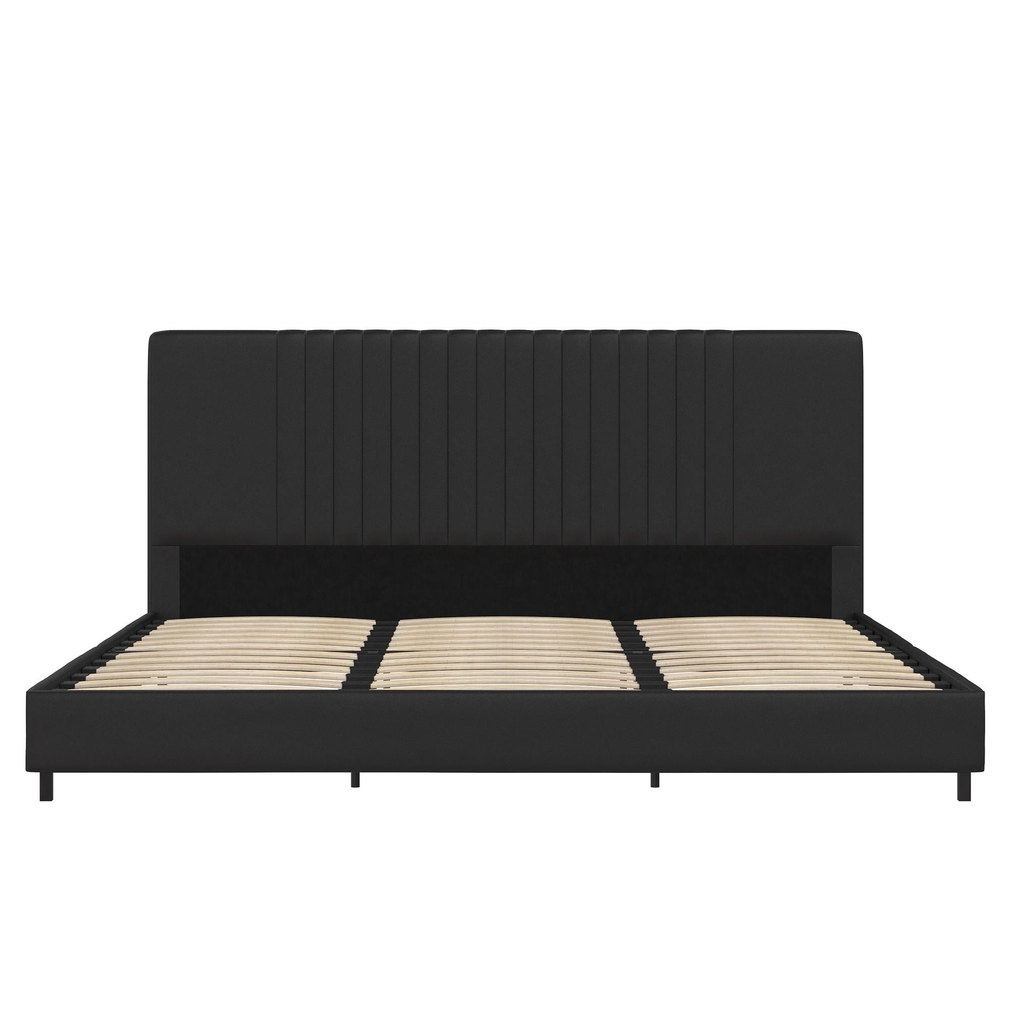 RealRooms Rio Upholstered Platform Bed with Wooden Slats and Vertical Tufted Headboard