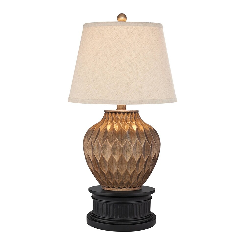 Modern Accent Table Lamp with Black Riser Warm Bronze Drum Shade - 14" x 22"
