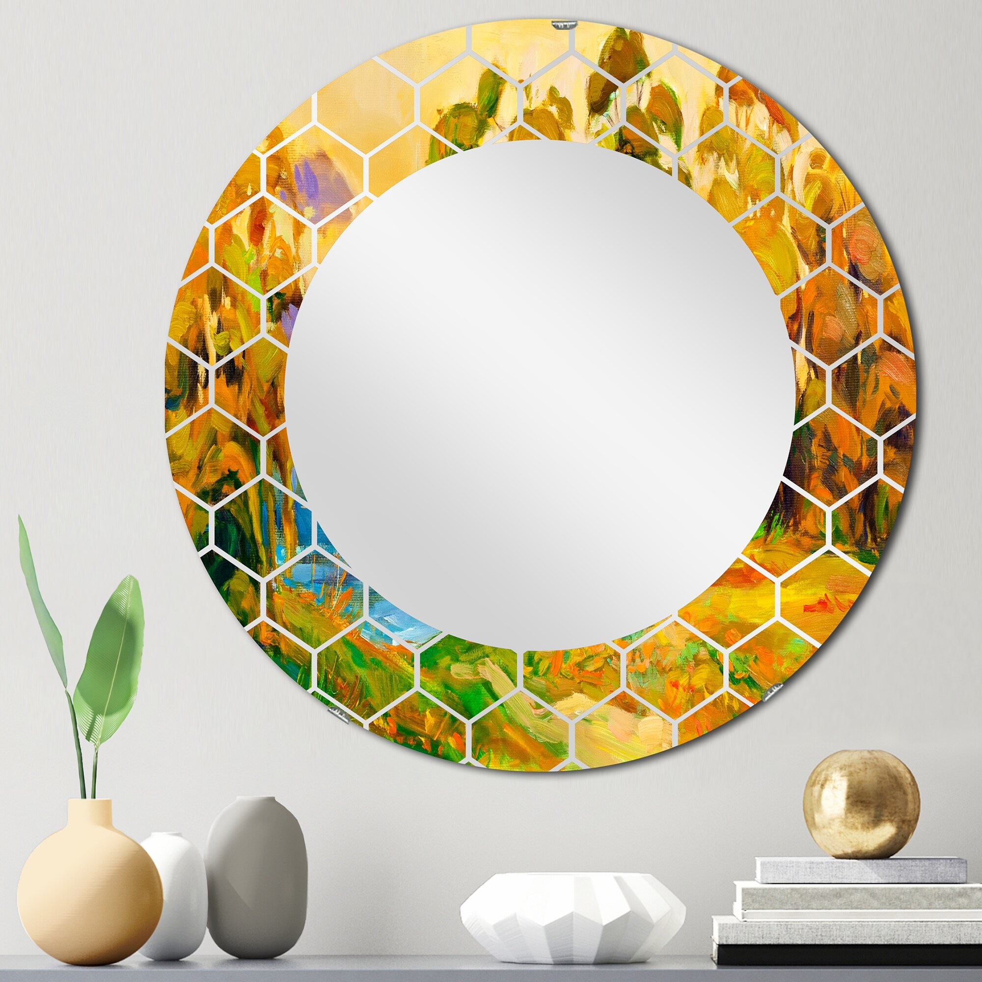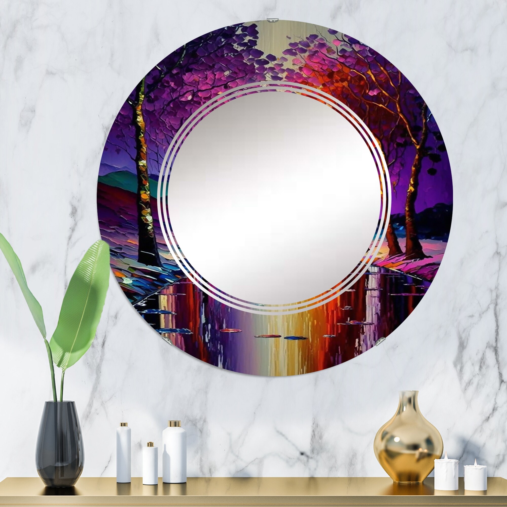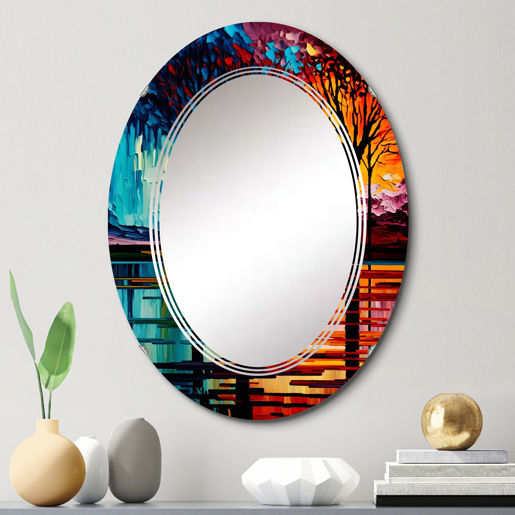 Designart 'Colorful Trees At Sunset By the Riverside I' Printed Landscape Forest Wall Mirror