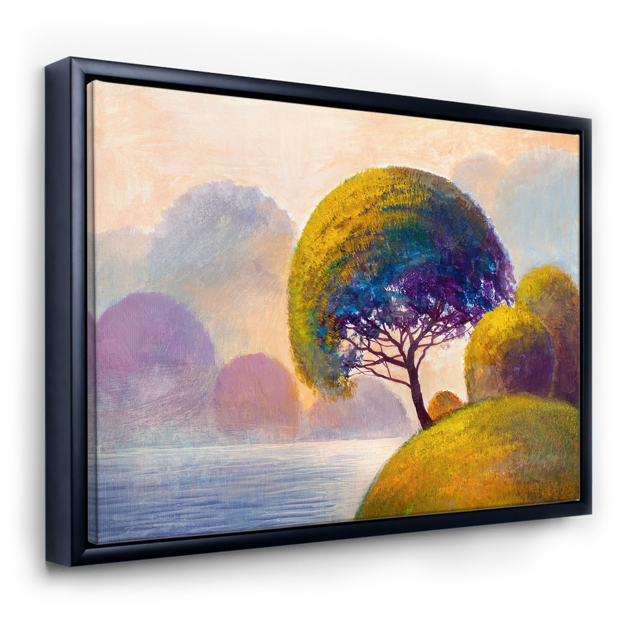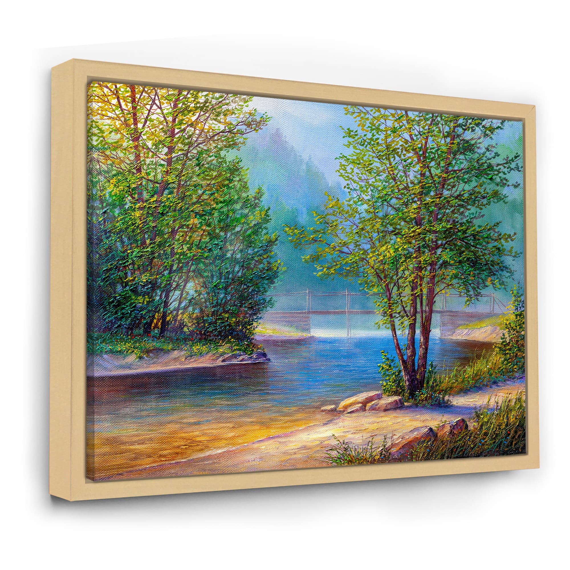 Designart "Colorful Summer Forest By Idyllic Riverside" Farmhouse Framed Canvas Wall Art Print