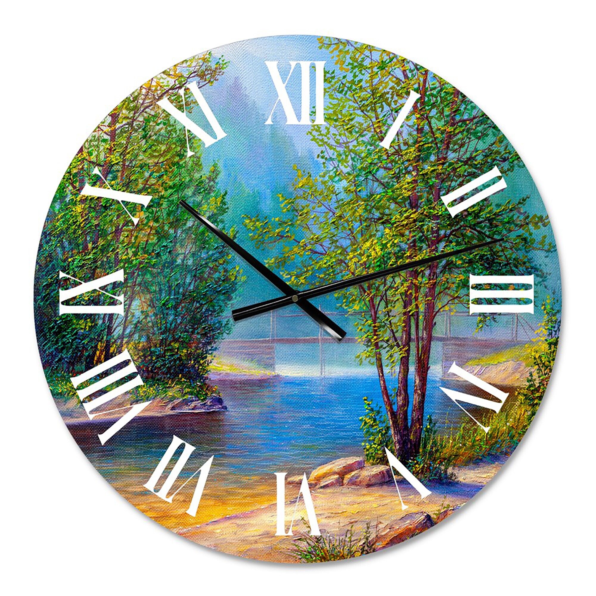 Designart 'Green Trees By the Riverside' Traditional Wall Clock Decor