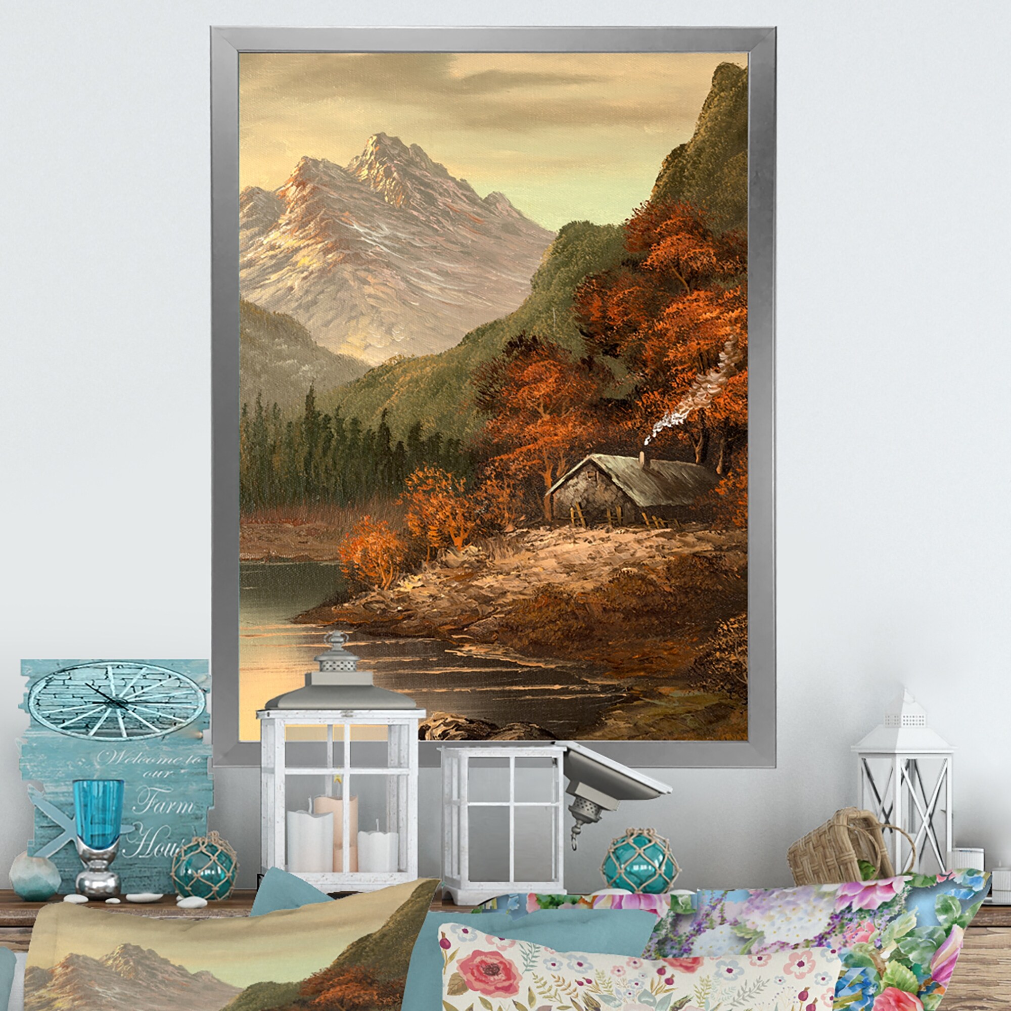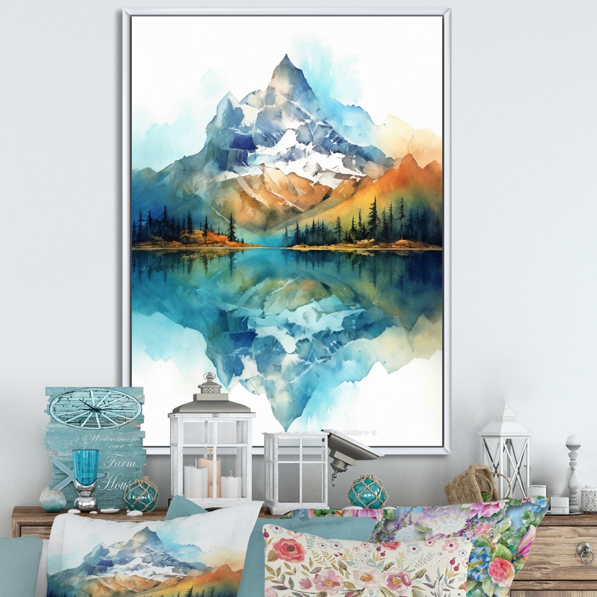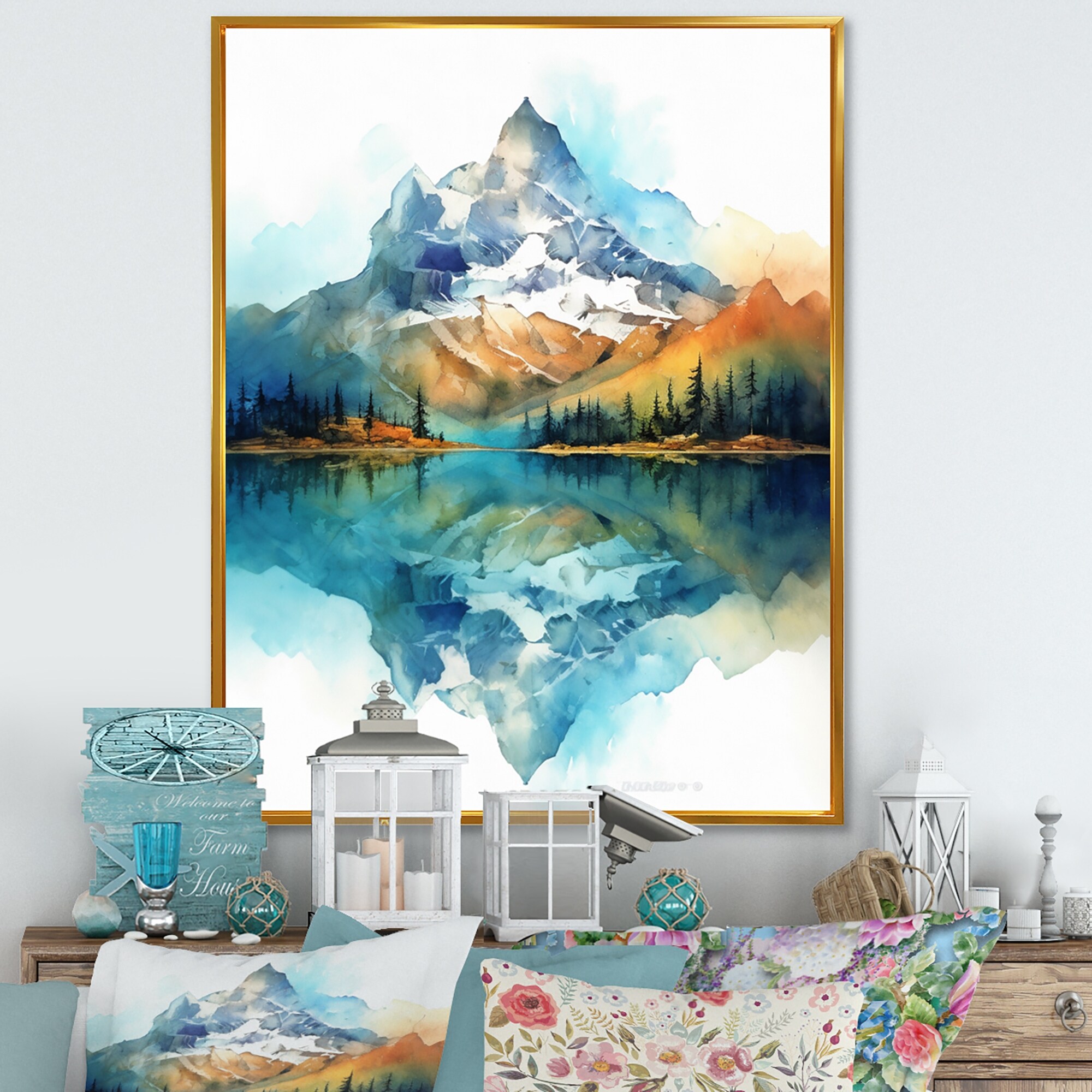 Designart "Mountain Viewed From the Riverside" Traditional Framed artwork