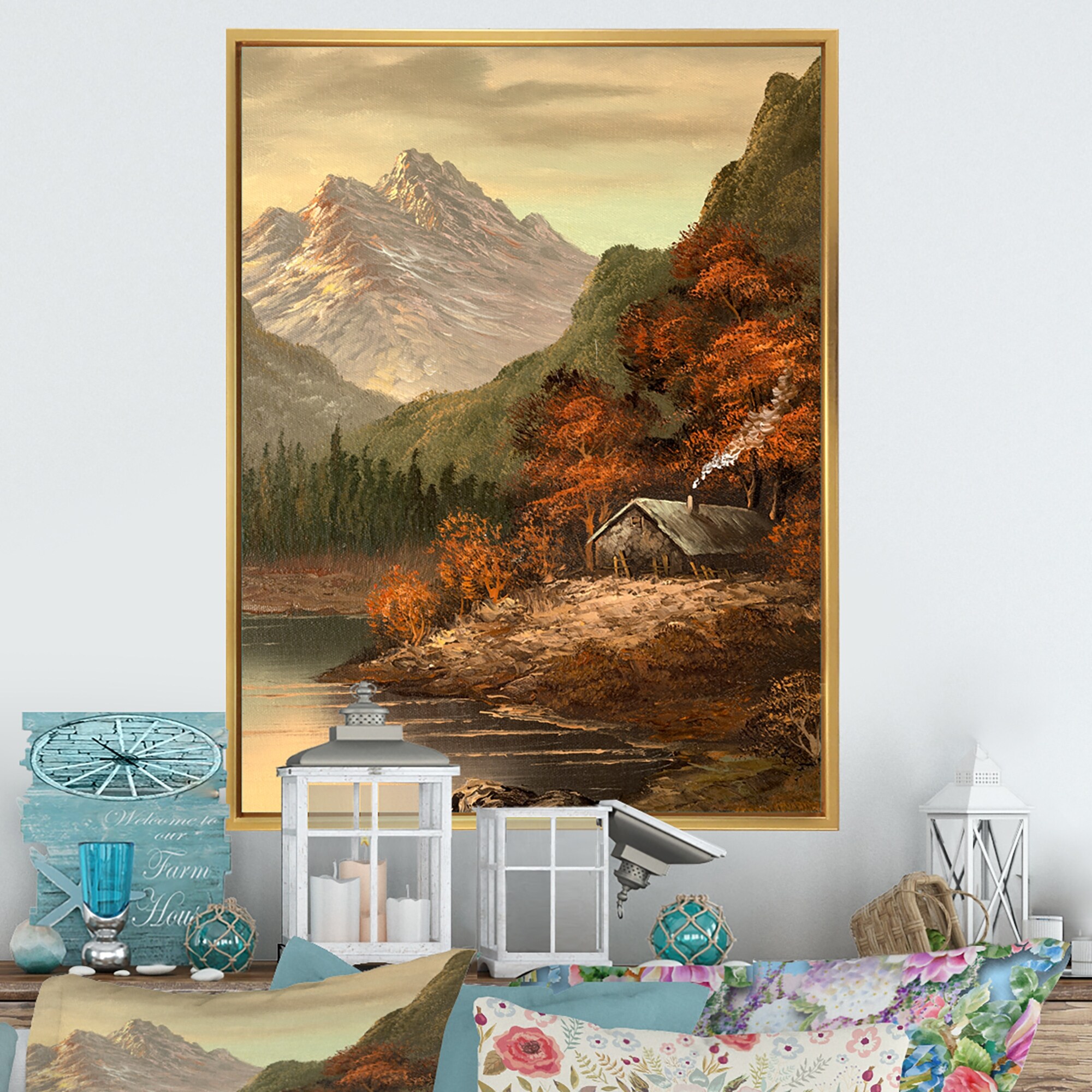 Designart "Mountain Viewed From the Riverside" Traditional Framed Canvas artwork