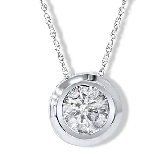 14k White Gold Round 1/4ct to1ct TDW Diamond Bezel Set Rope-chain Pendant