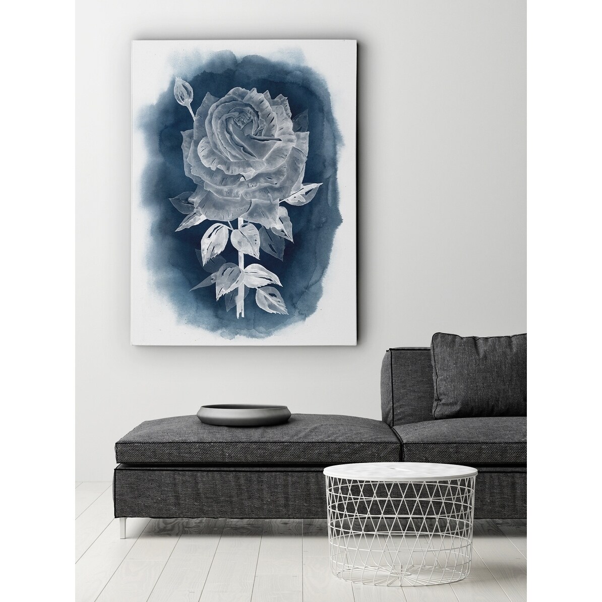 Irena Orlov's 'Grey Rose Blue Elements' Gallery Wrapped Canvas
