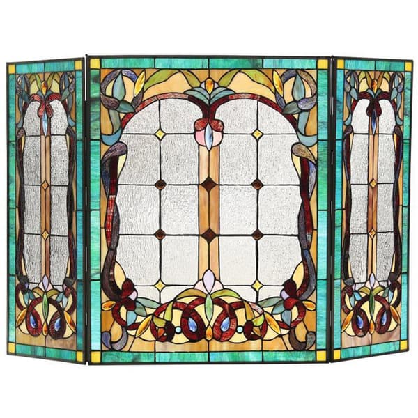 Tiffany-Style Victorian Design 3-panel Fireplace Screen