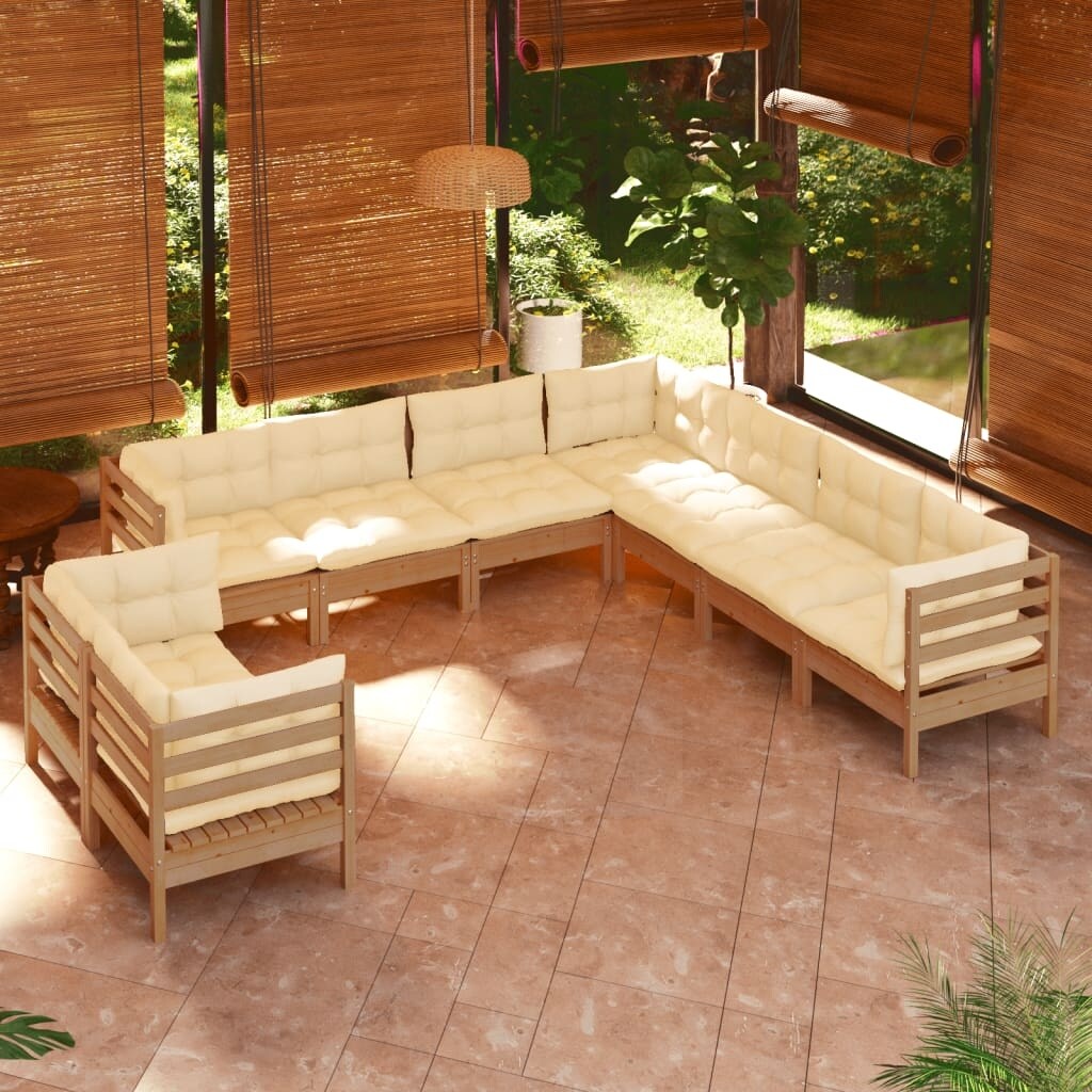 vidaXL 10 Piece Patio Lounge Set with Cushions Pinewood