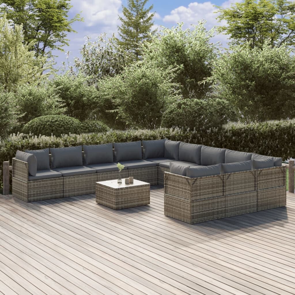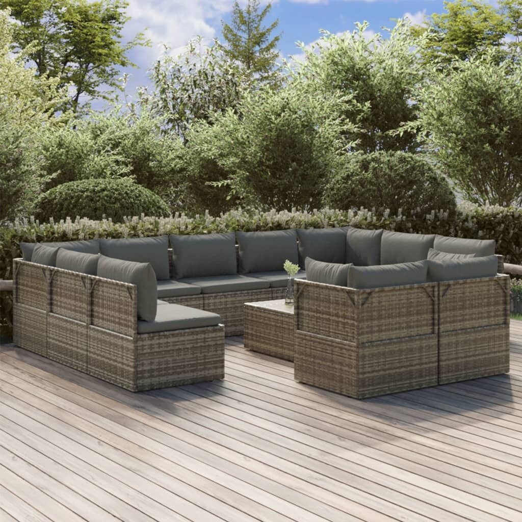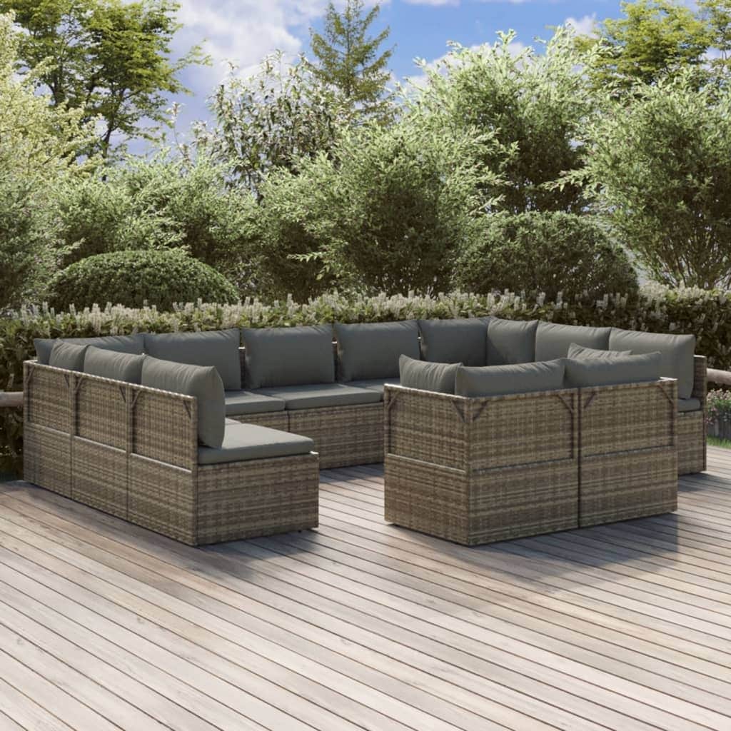 12 Piece Patio Lounge Set with Cushions Poly Rattan Gray