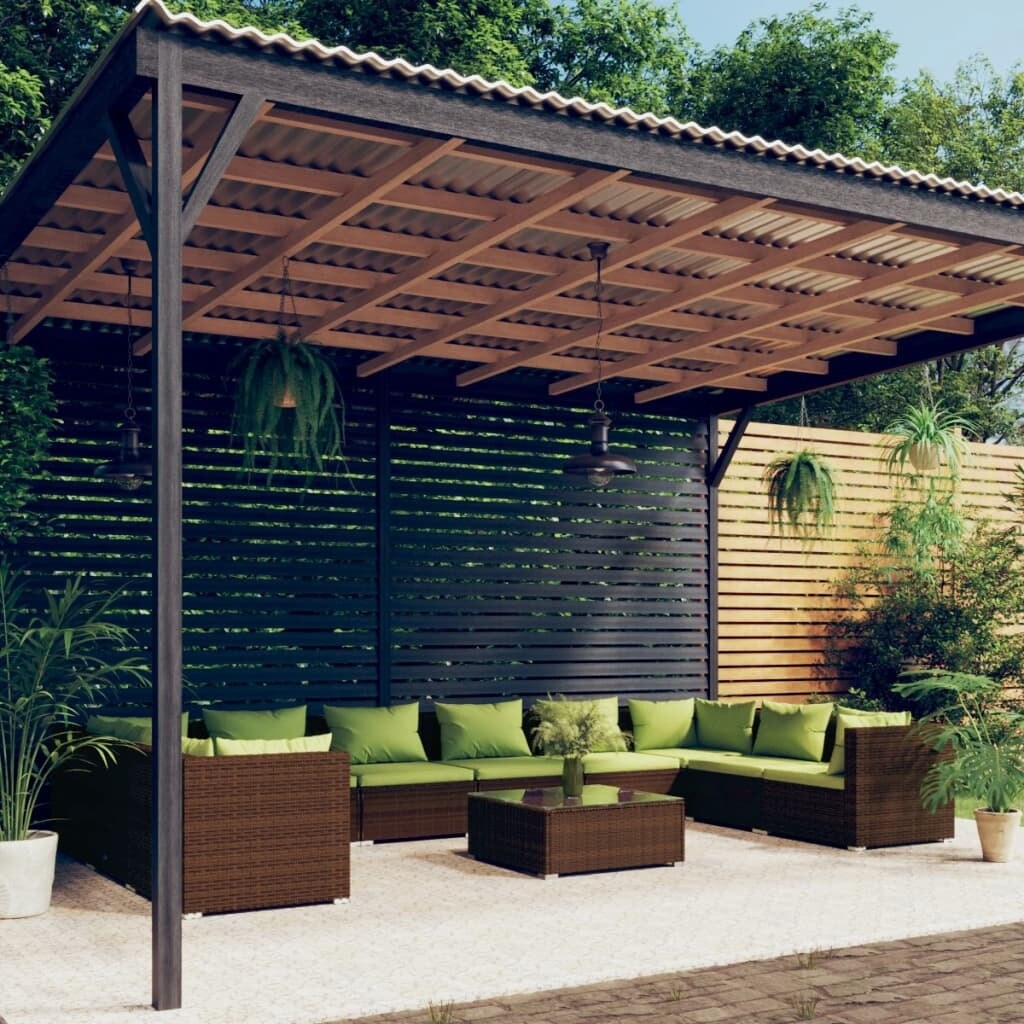 8 Piece Patio Lounge Set with Cushions Poly Rattan Brown