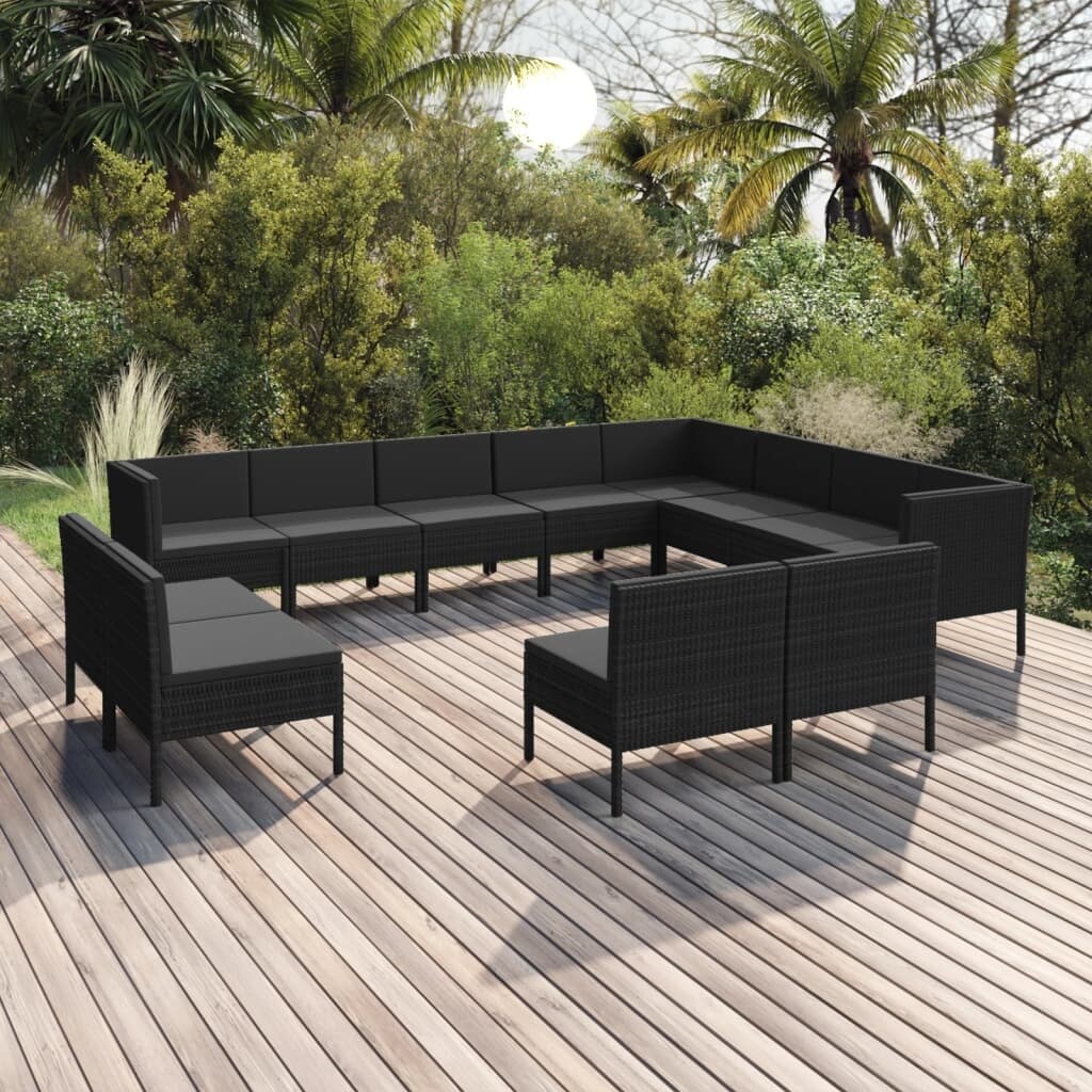 vidaXL 12 Piece Garden Lounge Set with Cushions Poly Rattan Black