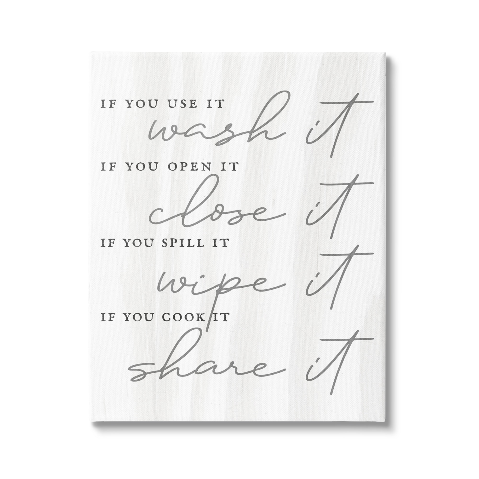 Stupell Witty Rustic Kitchen Rules Share It Quote Calligraphy Canvas Wall Art - White