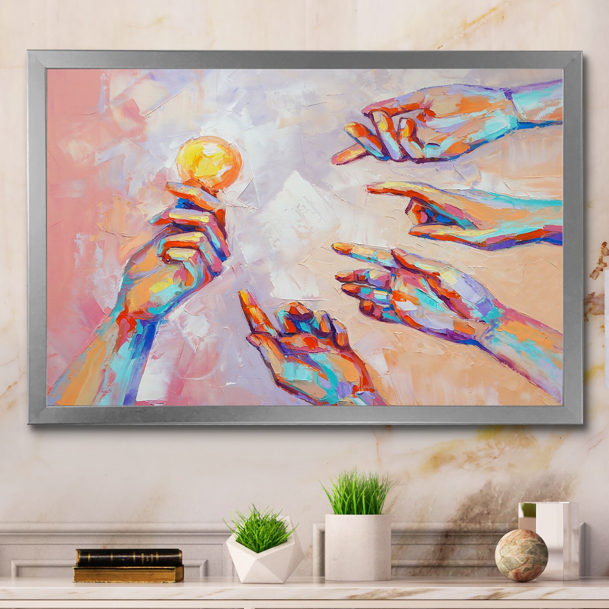 Designart "Pastel Pop Art Sharing the Wealth" Modern Framed artwork