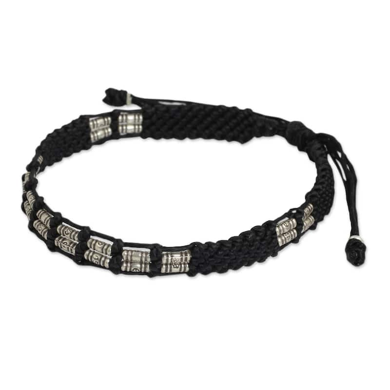 Handmade Sterling Silver 'Affinity In Black' Beaded Cord Bracelet (Thailand)