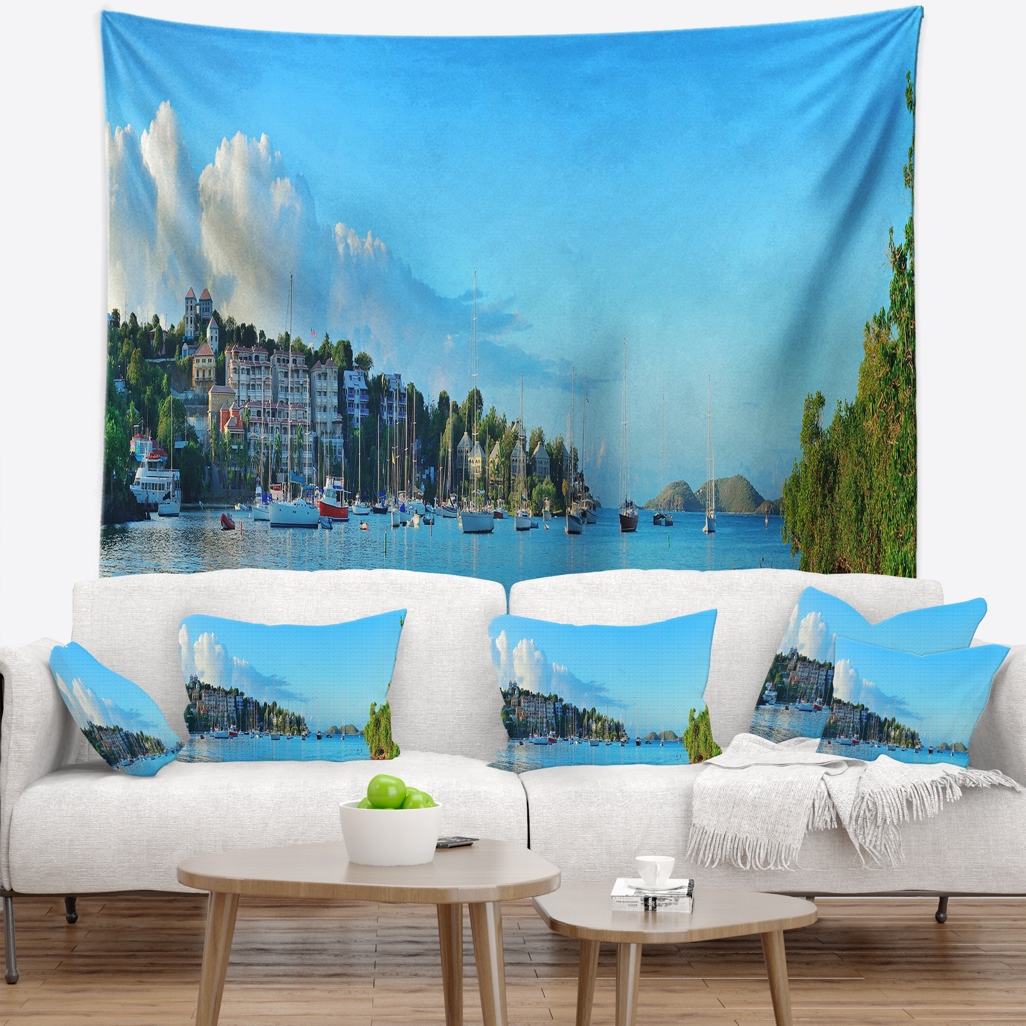 Designart 'St John Bay Panoramic View' Seashore Wall Tapestry