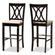 Calista Modern and Contemporary Fabric Upholstered and Brown Finished Wood 2-Piece Bar Stool Set