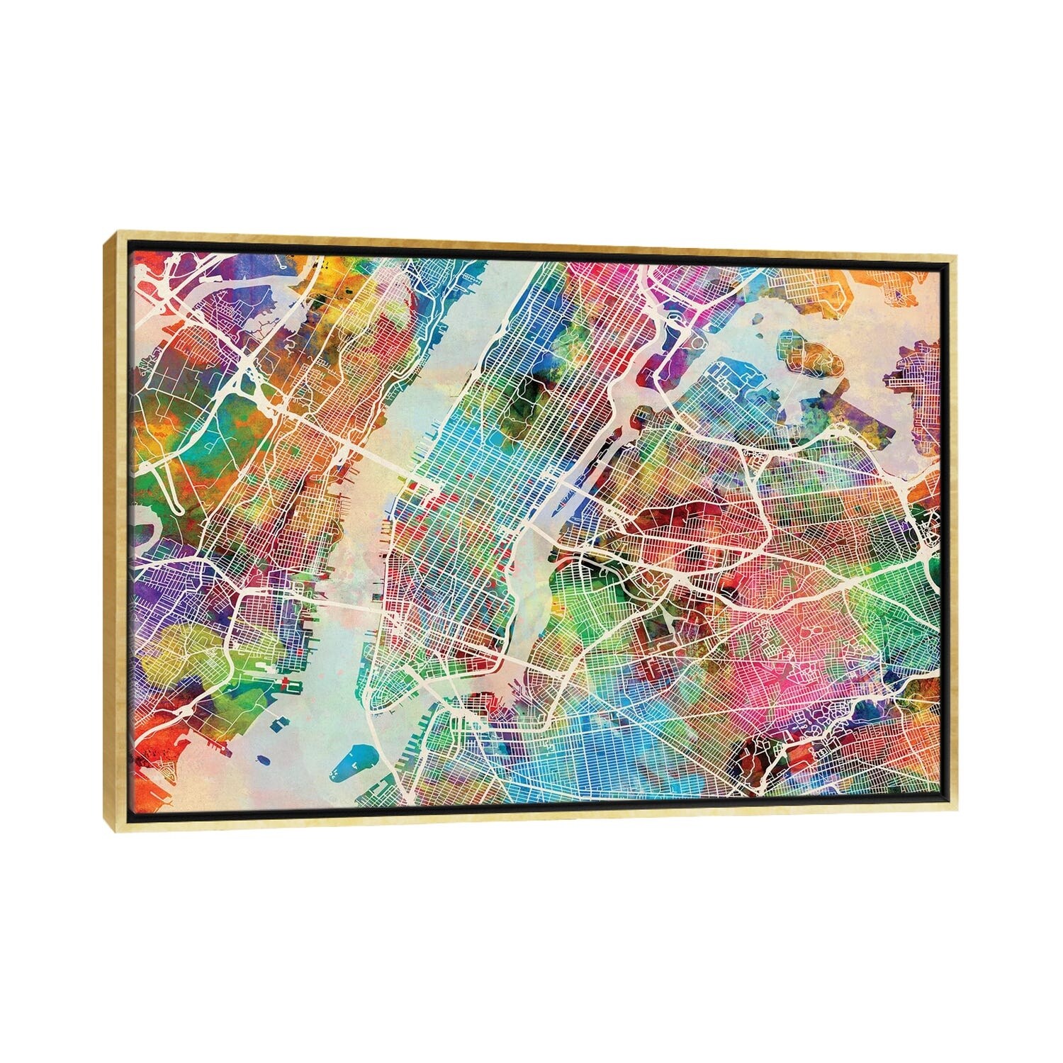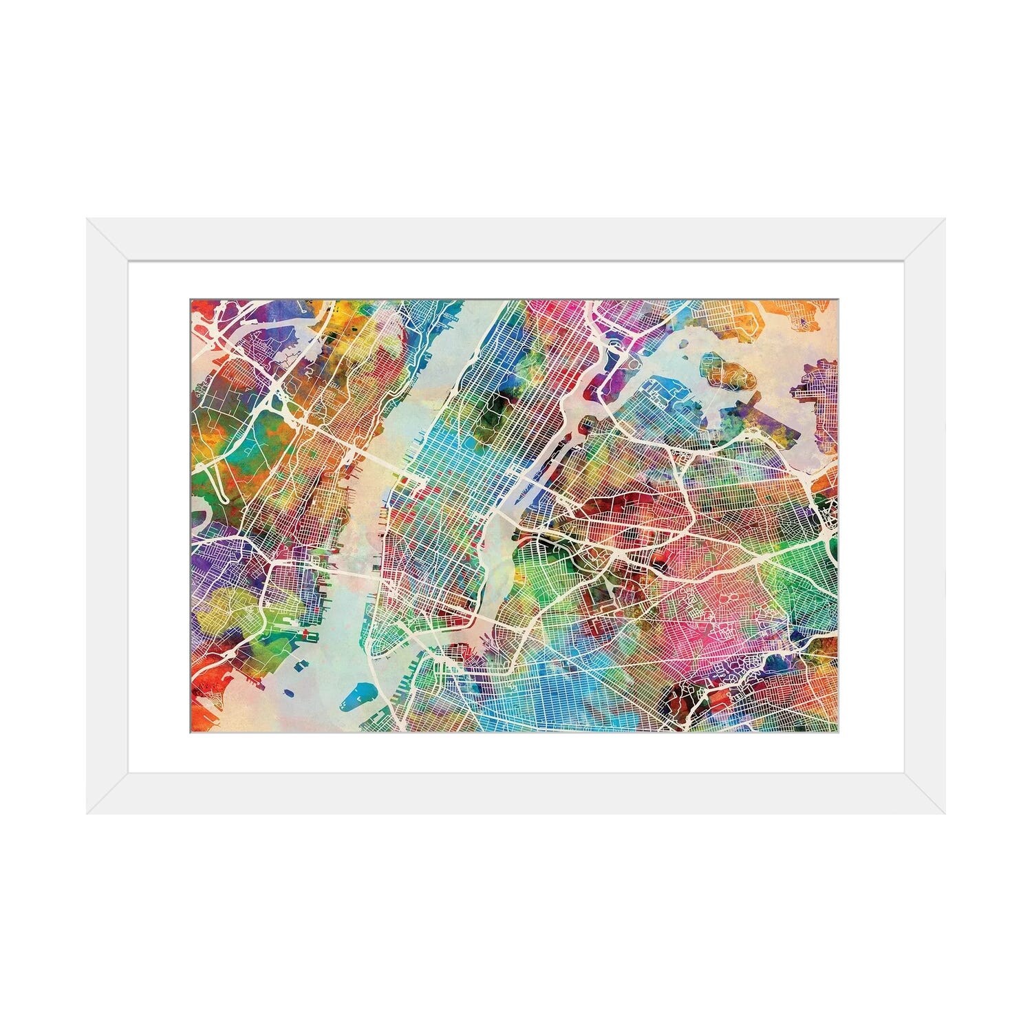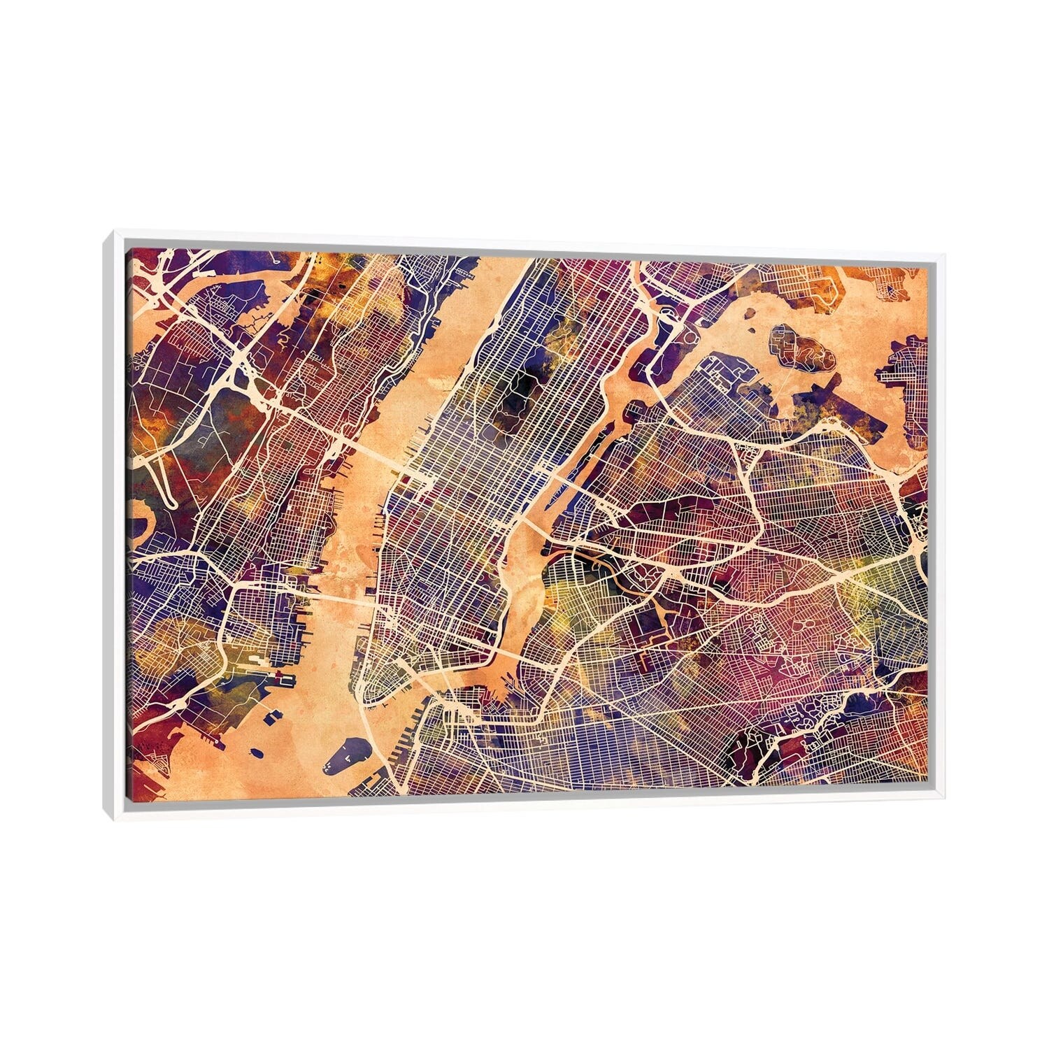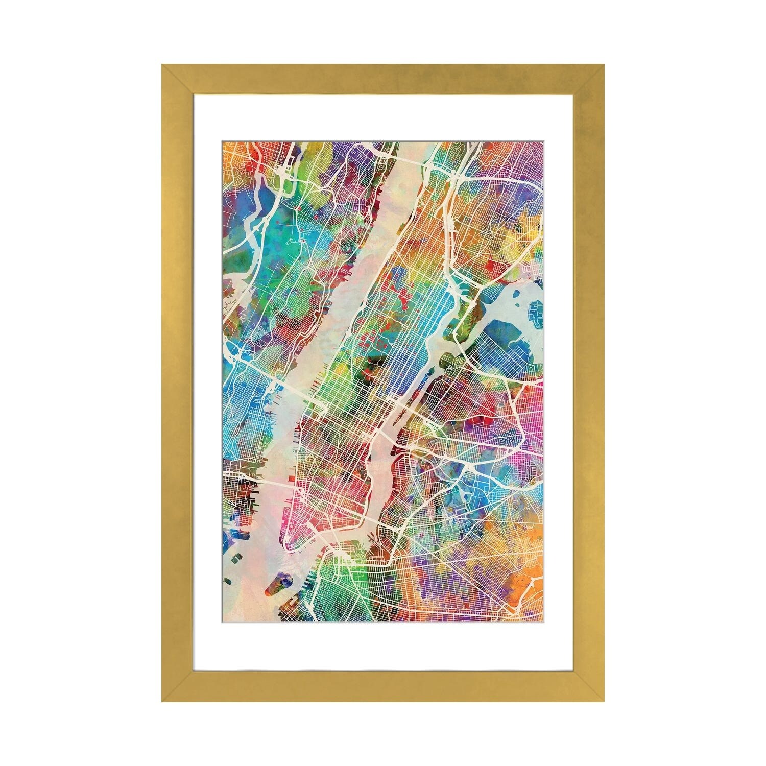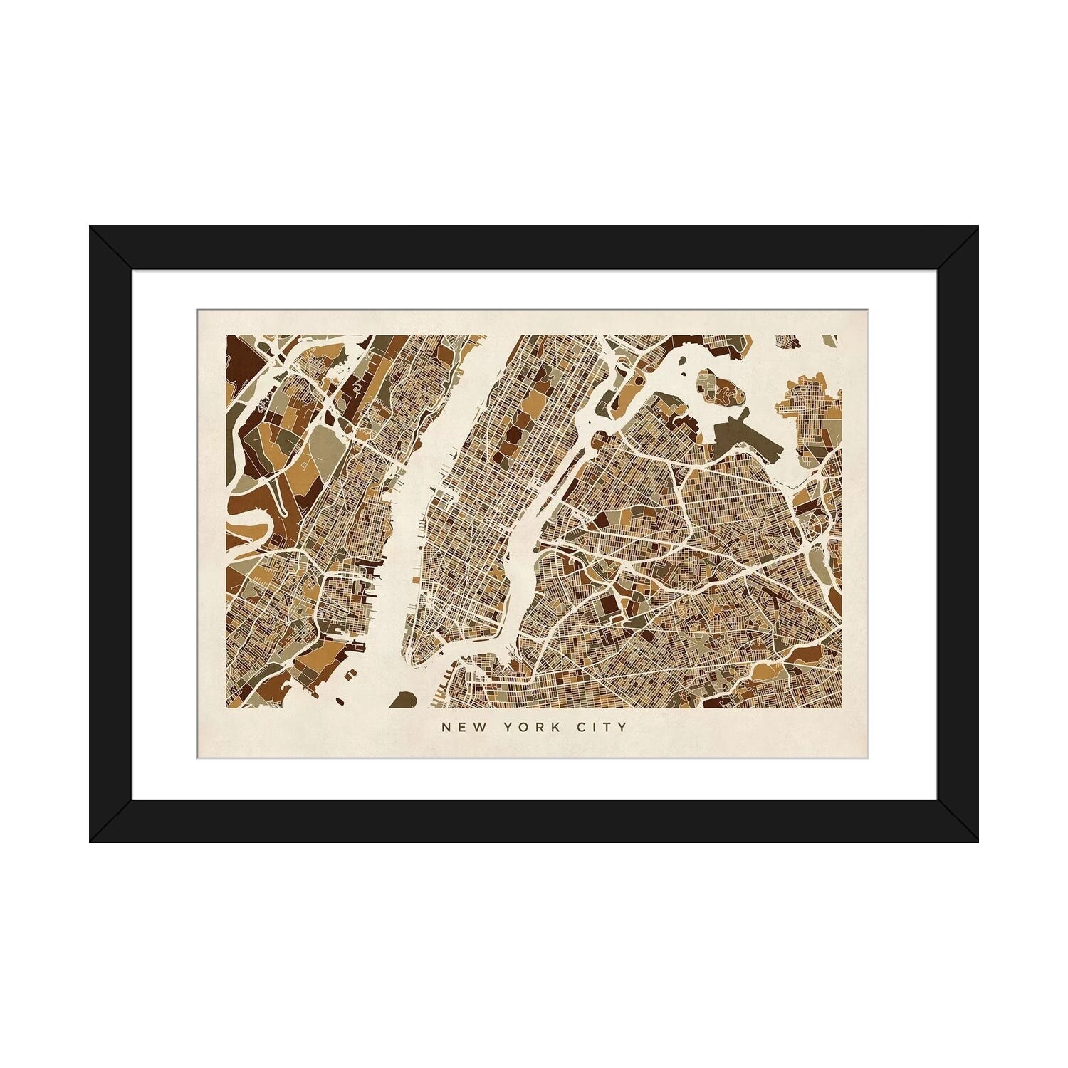 iCanvas "New York City Street Map I" by Michael Tompsett Framed Canvas Print