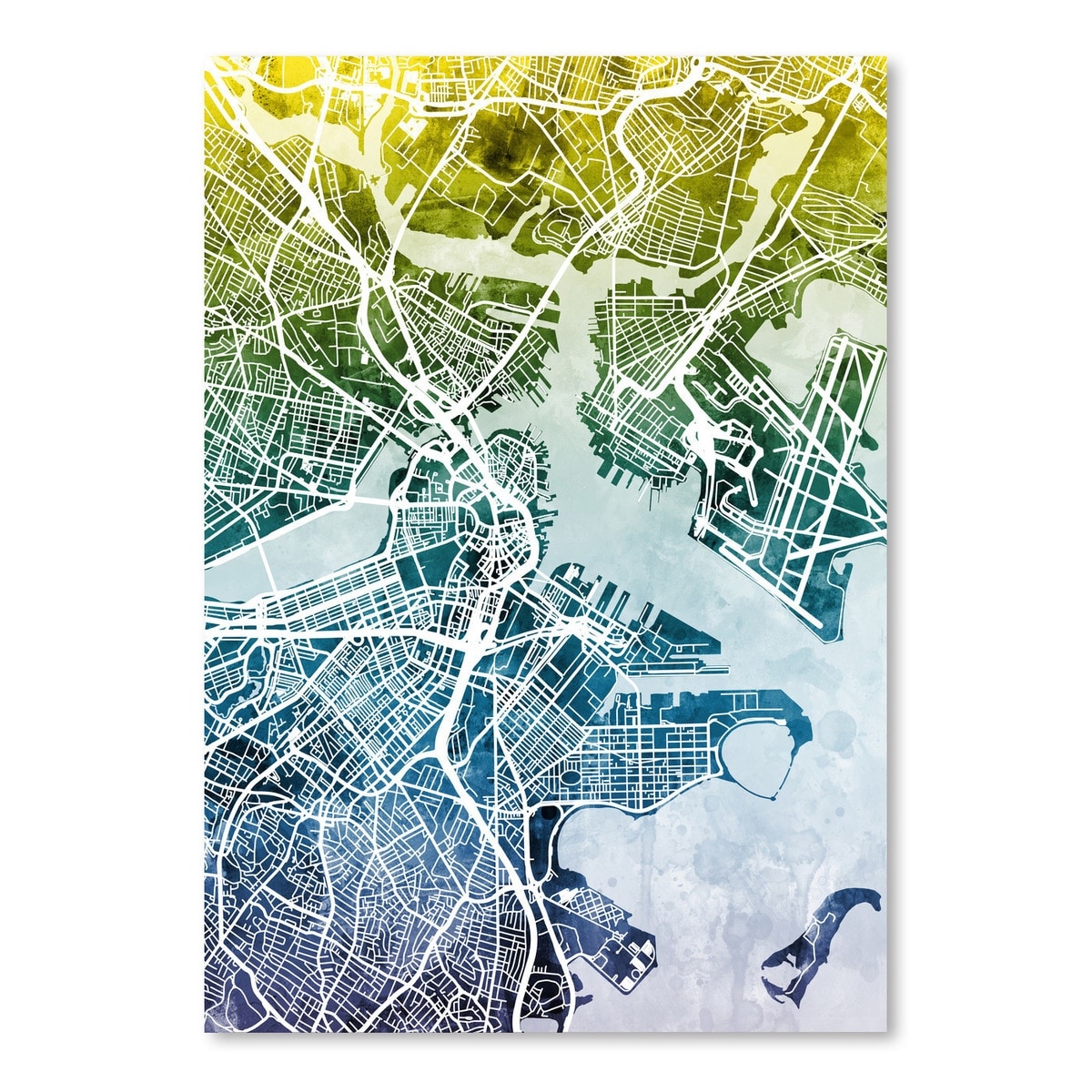 Americanflat - Boston Massachusetts Street Map New 1 by Michael Tompsett - 16"x20" Poster Art Print