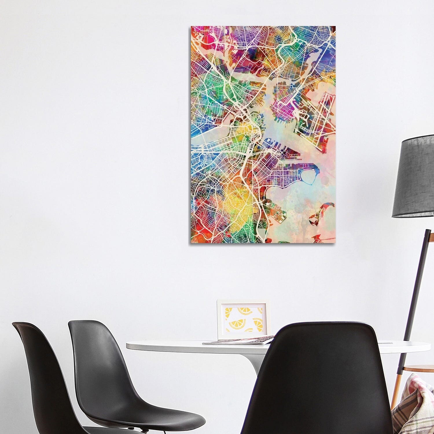iCanvas "Boston Massachusetts Street Map I" by Michael Tompsett Canvas Print