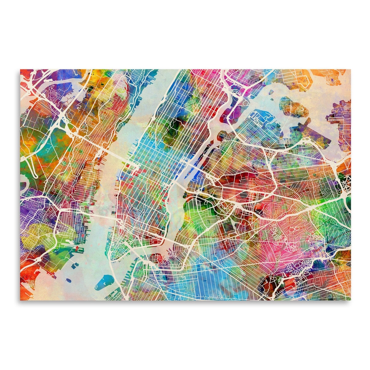 iCanvas "New York City Street Map, Color, Horizontal" by Michael Tompsett Canvas Print