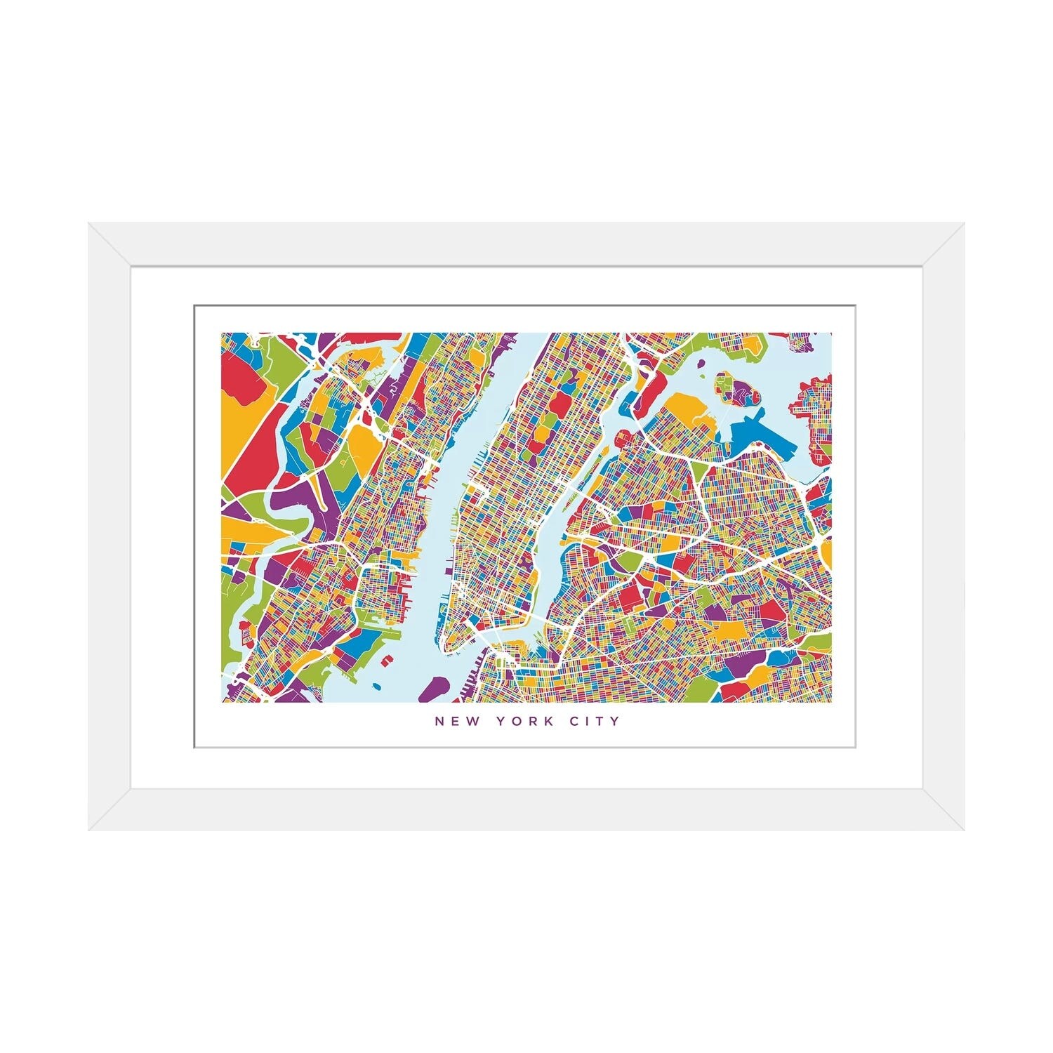 iCanvas "New York City Street Map II" by Michael Tompsett Framed Canvas Print