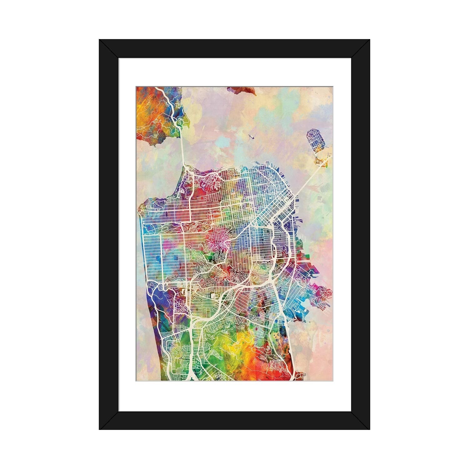 iCanvas "San Francisco City Street Map II" by Michael Tompsett Framed Canvas Print