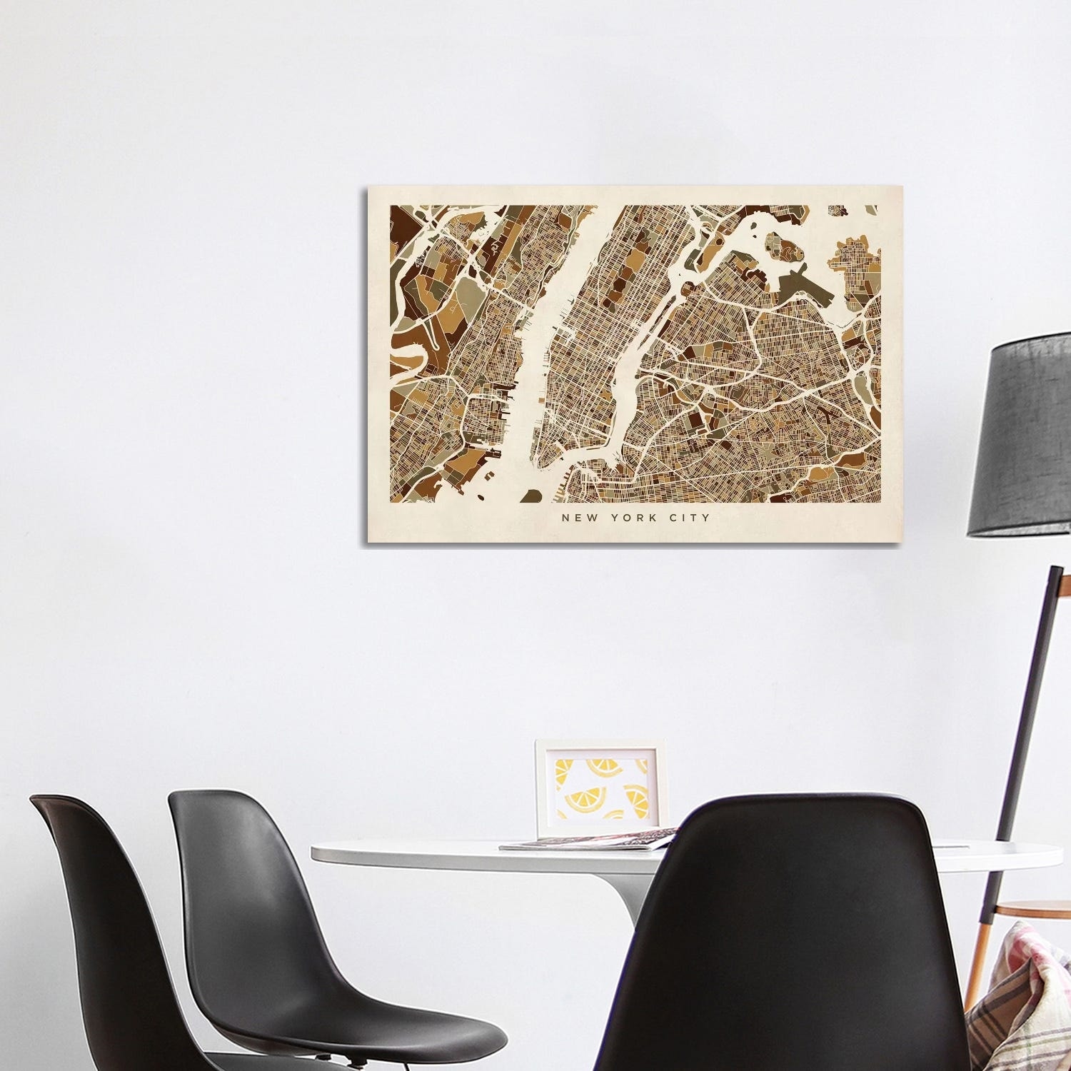 iCanvas "New York City Street Map, Browns, Horizontal" by Michael Tompsett Canvas Print